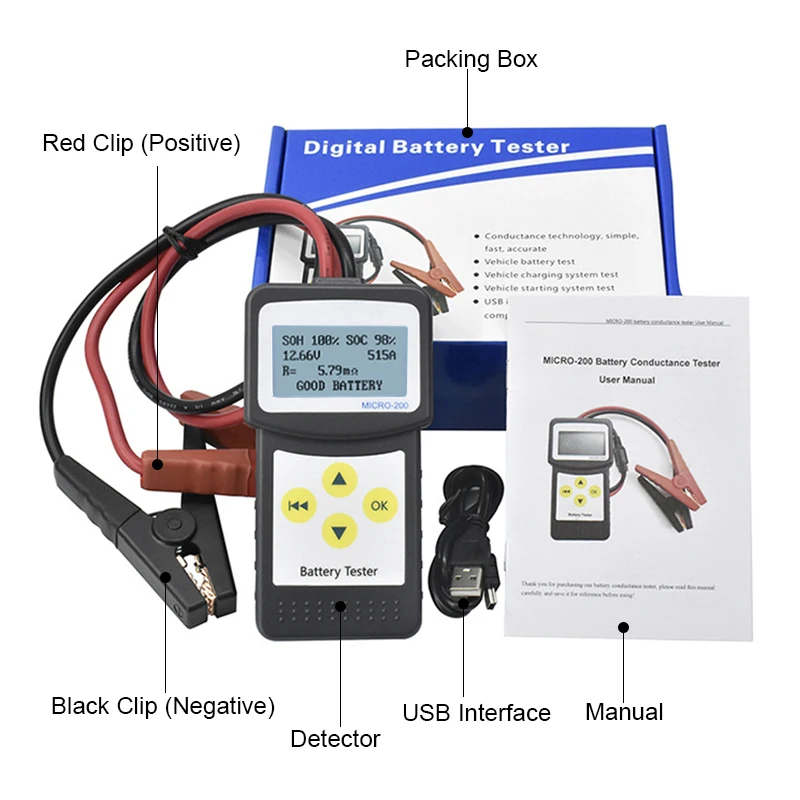 Микро 200 автомобильный тестер батареи 12 В многоязычный цифровой Cca100-2000 Agm Efb гель Автомобильная батарея система анализатор тестер батарея автомобиля