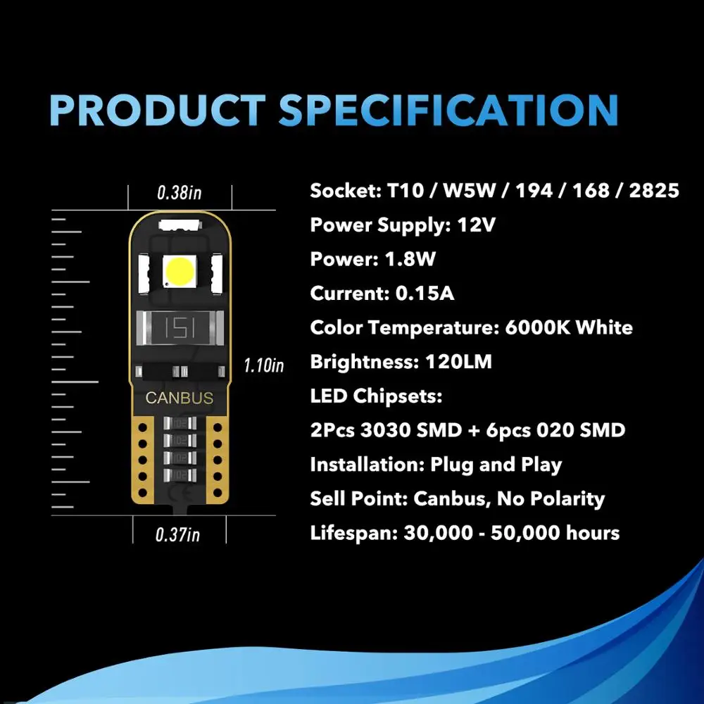 ● Широкое применение: замена для розетки W5W,T10, 194168, 2825 и т. Д.