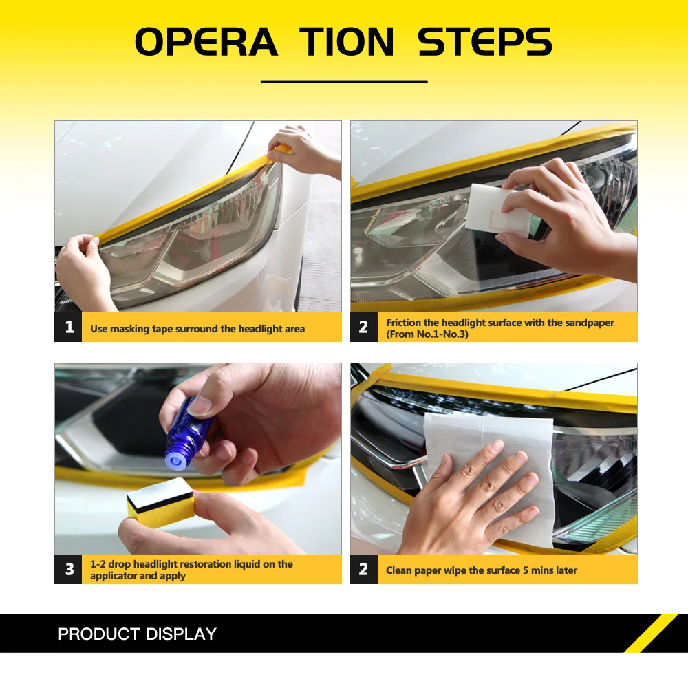 Option1: 1 x ремонт фар 2: 1 x ремонт фар 1 x полотенце из микрофибры 1 x лента для маскировки 2 x ткань без пыли 2 x наждачная бумага
