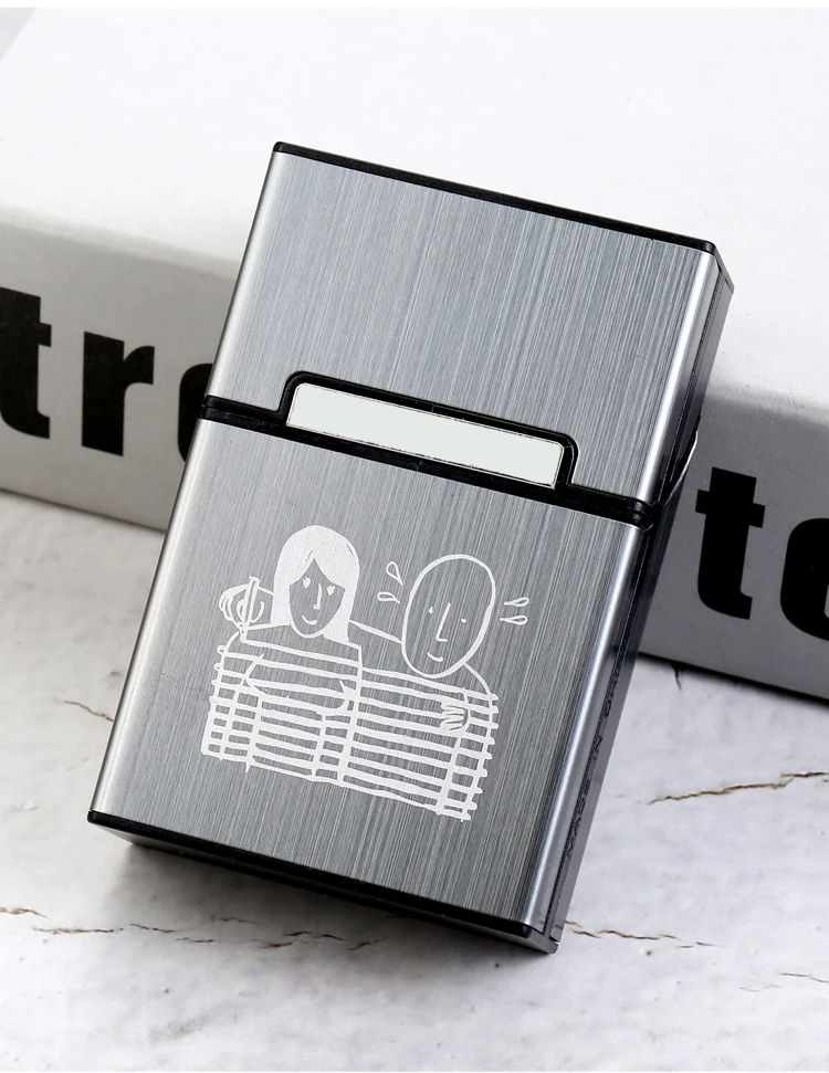 Название продукта: коробка для сигарет Название бренда: производные Oddity Материал: алюминиевый сплав + пластик Вес: 40 г Цвет: синий/серый/розовое золото/светильник золотой Размер: 92 мм/длина, 60 мм/ширина, 27 мм/высота Технология обработки: лазерная маркировка Узор: Креативный дизайн Посылка в комплекте: коробка для сигарет X 1 шт. (Сигареты в комплект не входят)