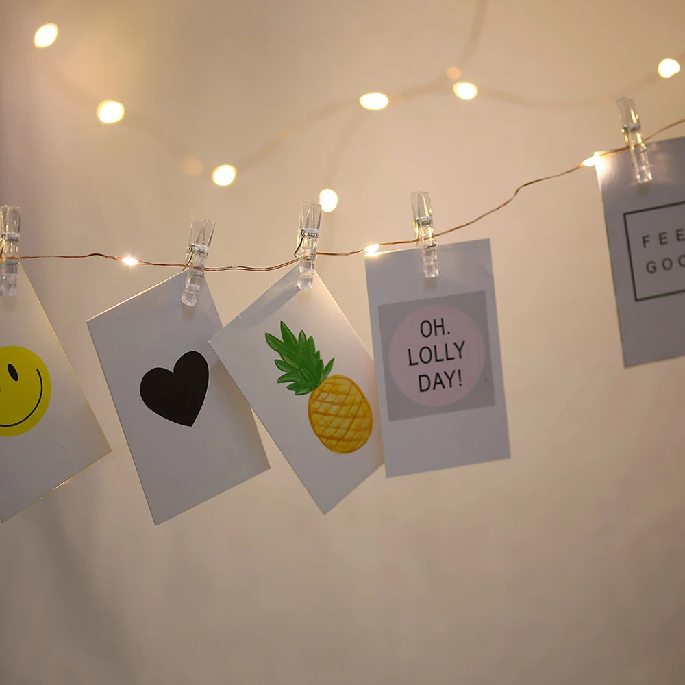 Фото клип струнные огни 20 50 100 светодиодный свет с 20/50 прозрачными клипсами для подвешивания фотографий фото струнные огни с зажимами батарея USB управляемый идеальный общежития спальня настенный Декор Свадебные украшения