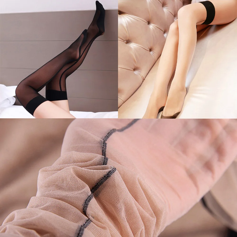 Шелковистый прозрачный вид на ноге, особенности в задней линии шва, Гламурная одежда.