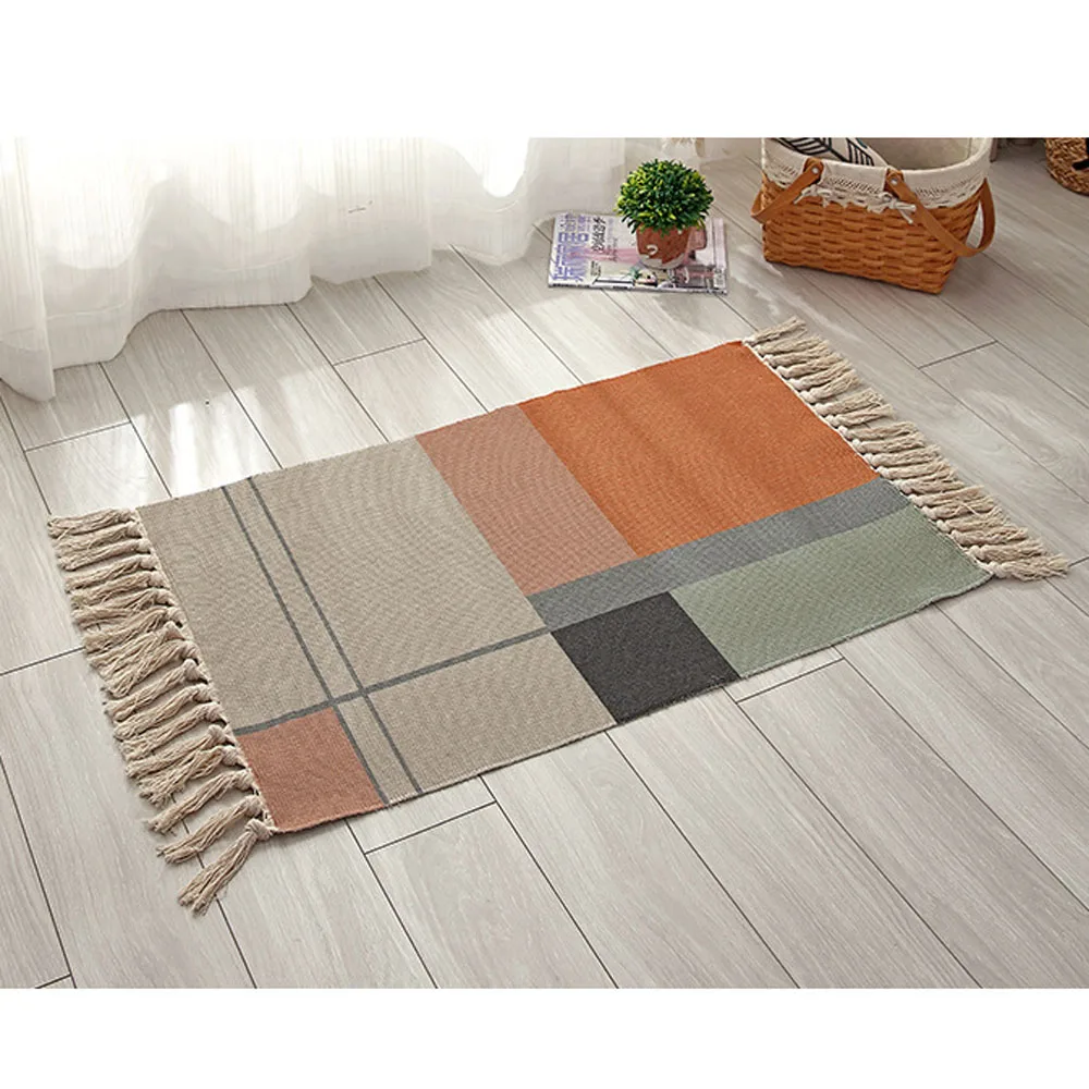 Хлопковый и льняной тканый ковер с кисточками, напольный коврик, дверной гобелен для спальни, декоративное одеяло, чайный ковер для гостиной, ковер 35
