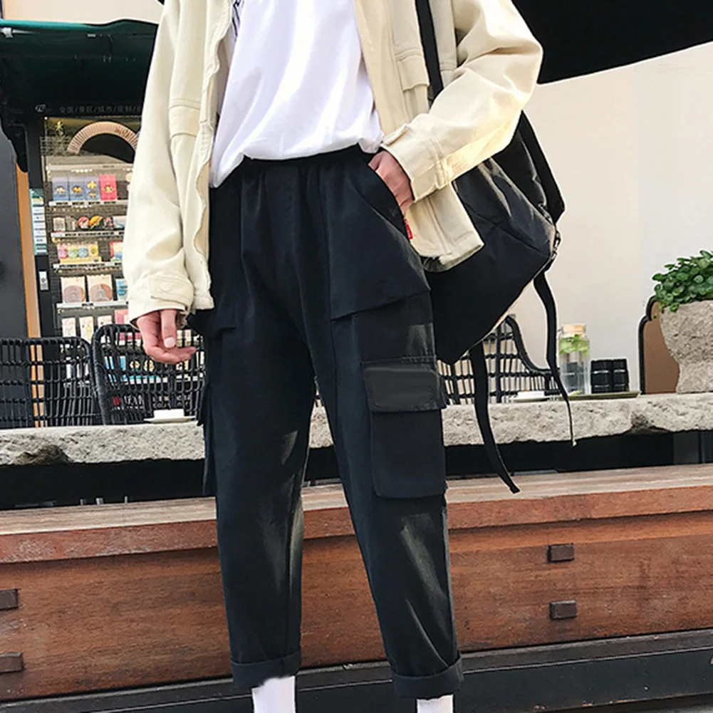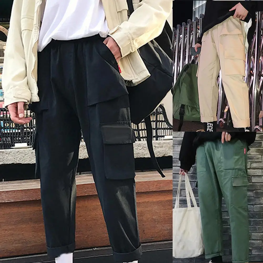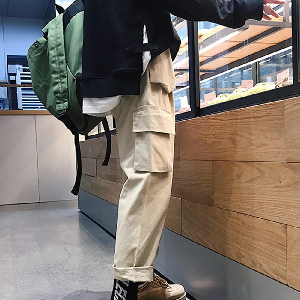 Винтажные мужские однотонные длинные спортивные брюки с несколькими карманами, прямые брюки-карго