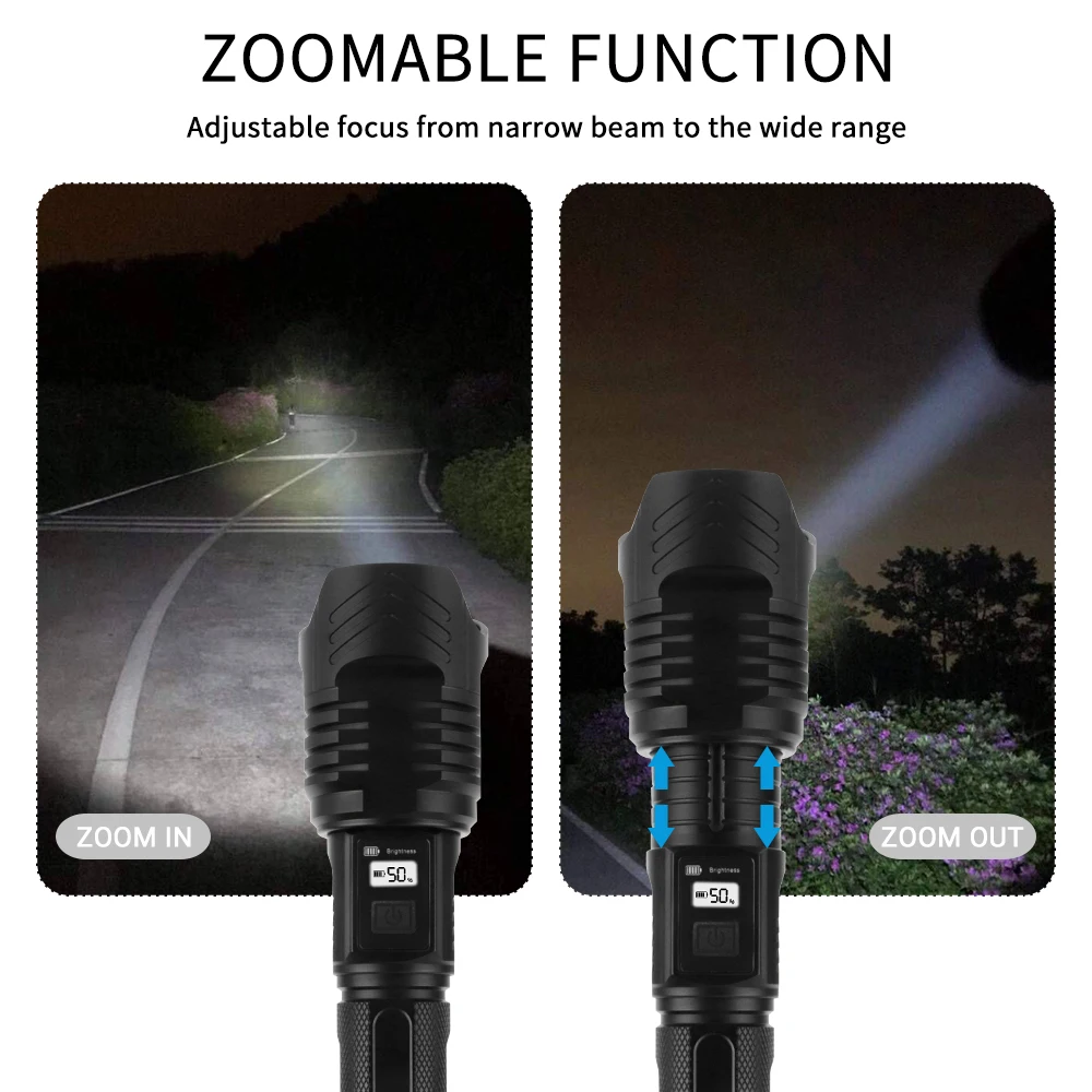 ★ЖК-дисплей показывает мощность и яркость ★Добавьте медь и вольфрамовую сталь комбинированный оконный молоток на хвосте ★Вход и выход, может использоваться в качестве аварийного зарядного устройства ★Режущая головка с супер большим дизайном объектива, большим коэффициентом пропускания света и диапазоном диафрагмы, дальностью до 500 метров, интегрированным полным резным процессом ★Нажмите на яркость по умолчанию 50%. В этом режиме нажмите и удерживайте, чтобы перейти в режим плавного затемнения. Дважды щелкните, чтобы открыть режим супер яркий. В любом режиме процент яркости будет уменьшаться со временем (для предотвращения перегрева), Гц для режима SOS