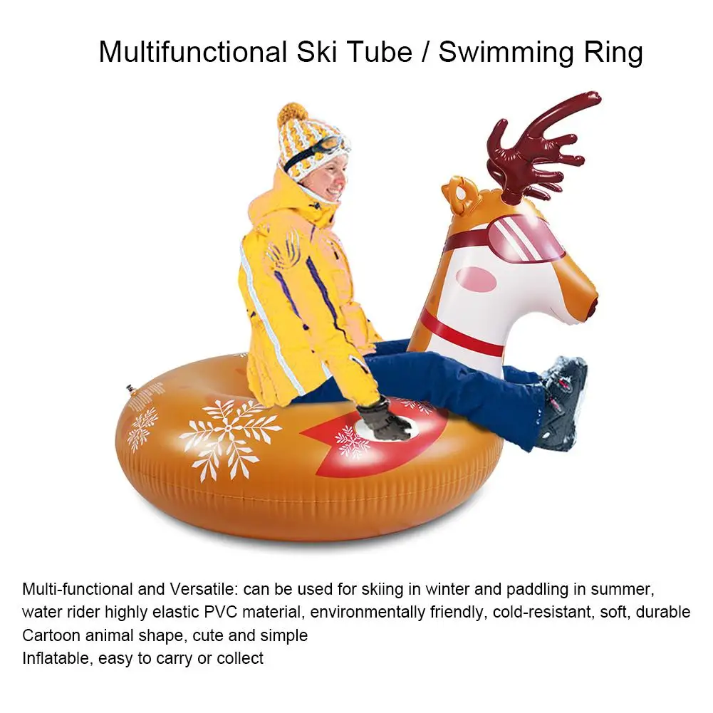 2 в 1 лося надувные лыжи круг снежной трубки с ручкой круг снег лыжные зимние сани трубки для зимнего снега сани инструмент для катания на лыжах
