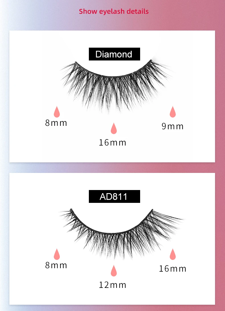 5 пар в наборе: 856 + AD811 + Diamond + T09 + t11ресницы, 1 волшебная подводка для глаз, 1 пинцет