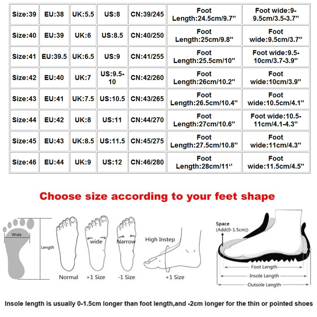Полезные советы:Различные стили обуви, пожалуйста, выберите размер в соответствии с типом вашей стопы.