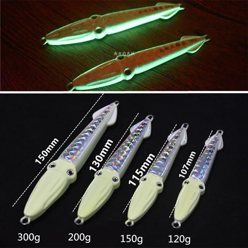 Светящаяся приманка для ловли тунца, лазерная приманка 120 г/107 мм, 150 г/115 мм, 200 г/130 мм, 300 г/150 мм