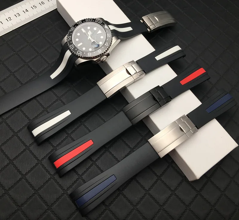 20 мм 22 мм натуральный силиконовый резиновый ремешок для ролевых ремней для подводного ремня GMT D-Blue126660 Sea-Dweller Daytona браслет