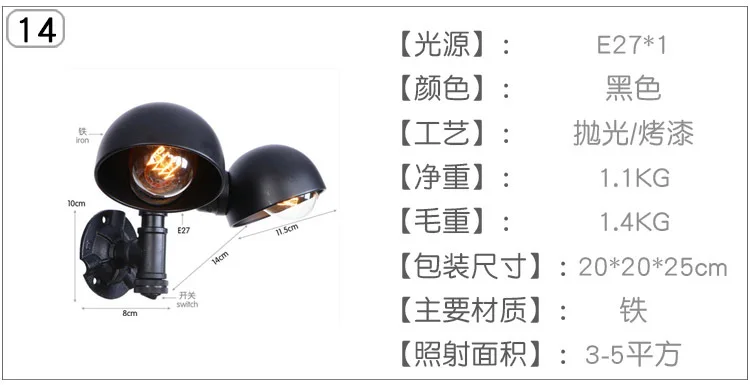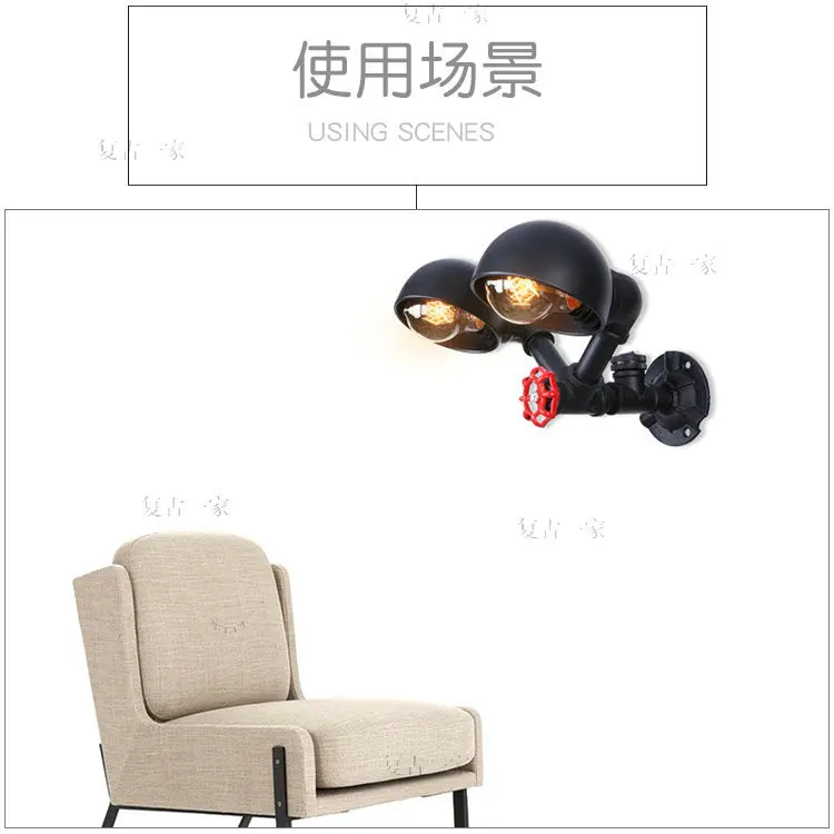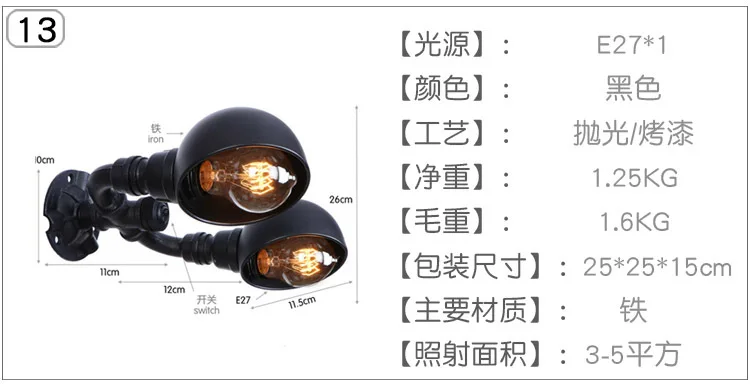 (Тип L-U) 220 В водопроводный настенный светильник Ретро промышленный черный для спальни внутреннее украшение Железный одиночный/двойной бра настенный светильник