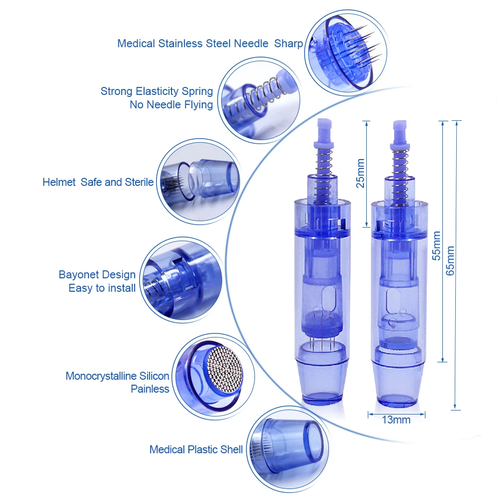 9pin микроиглы: анти-акне, восстанавливает шрам Микроиглы 12pin: анти-акне, восстанавливает шрам, удаляет растяжки 36pin микроиглы: против морщин, Увлажняющий, лифтинг, удаление веснушек 42pin микроиглы: анти-акне, против морщин, увлажняющий, лифтинг, удаление веснушек Круглые нано микроиглы: захватывает Тотал, инъекции питательных веществ, МТС, против морщин, лифтинг, удаление веснушек, дневной уход Квадратные нано микроиглы: подходят для нежной кожи вокруг глаз, красной крови, подъема и ремонта, удаления веснушек, ухода за днем
