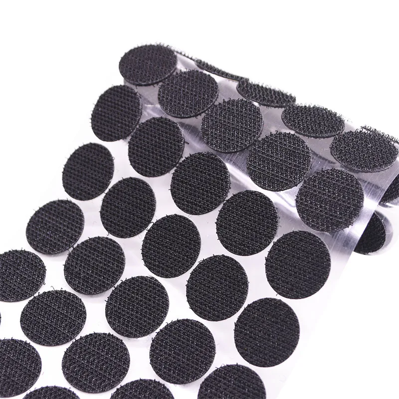 Hook and matte sides have adhesive on the back, which can be peeled off and stuck to the product.