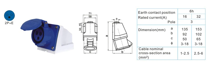 32A 3 Pin 220V-240V 2P + E IP44 водонепроницаемый мужской женский Электрический разъем Подключение питания промышленные вилки и розетки Модель: 023/123/223/323 Название: промышленная розетка/вилка Ток: 32A Напряжение: 220-240 В Полюс: 3 Контактное положение земли: 6h Степень защиты: IP44 Материал: PA66,H62 латунь Сертификация: CE