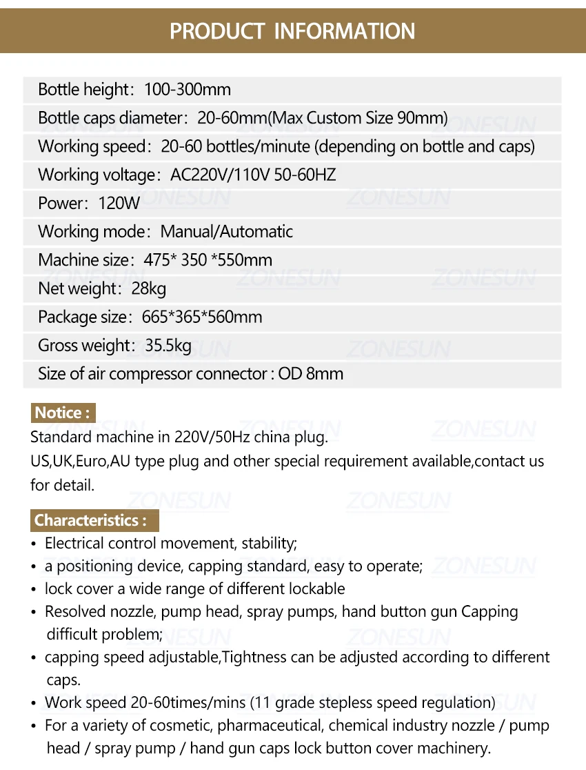 Скорость укупорки регулируется, герметичность может регулироваться в соответствии с различными колпачками.