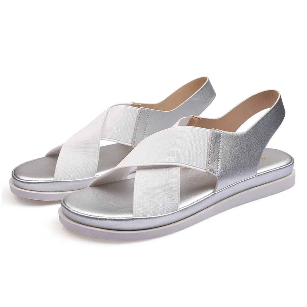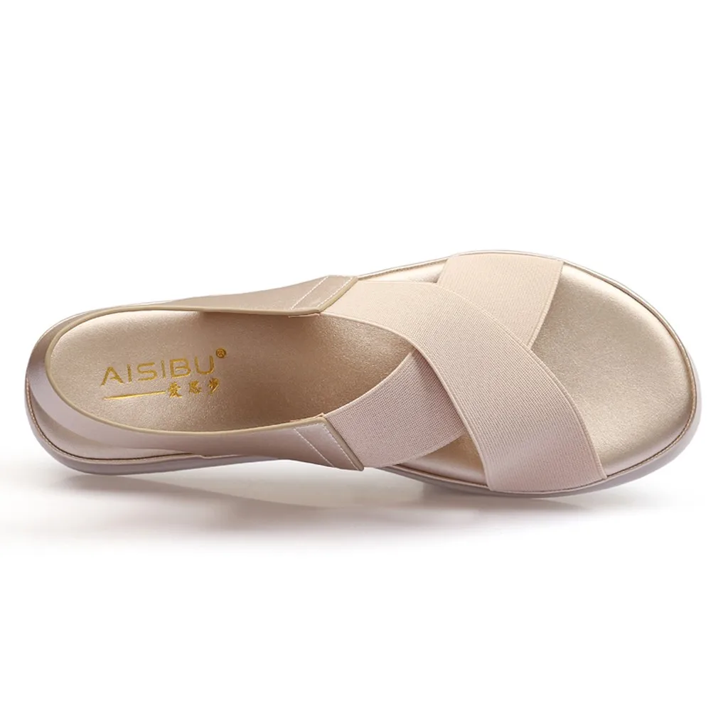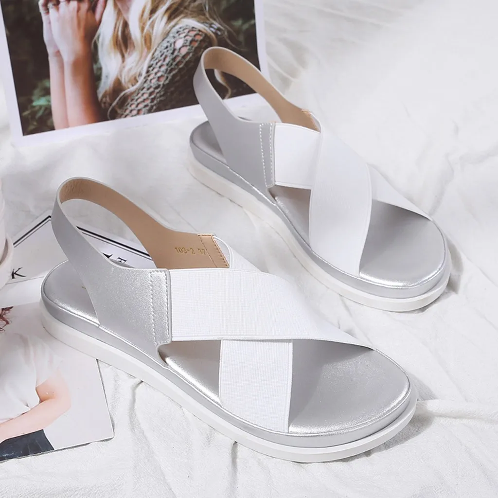 Женские удобные сандалии без застежки; эластичные текстильные комбинированные сандалии; Повседневная пляжная обувь
