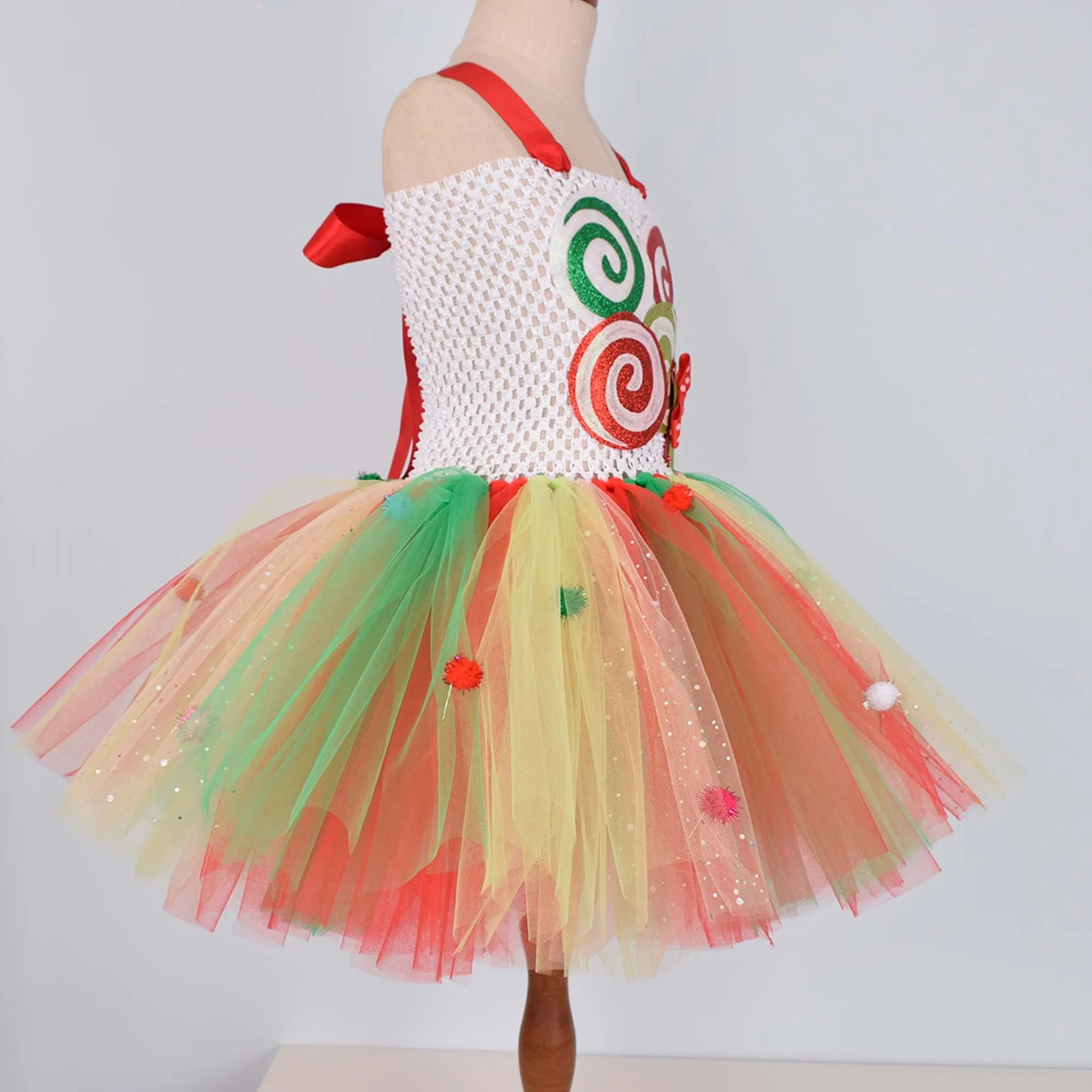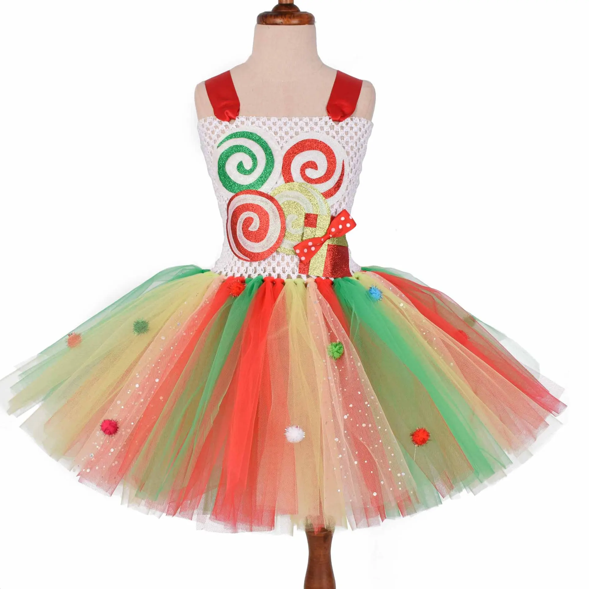 Яркое платье-пачка для девочек на леденец Детские Вечерние платья с фатиновой юбкой на Рождество и день рождения новогодний Рождественский костюм для девочек подарок От 1 до 12 лет
