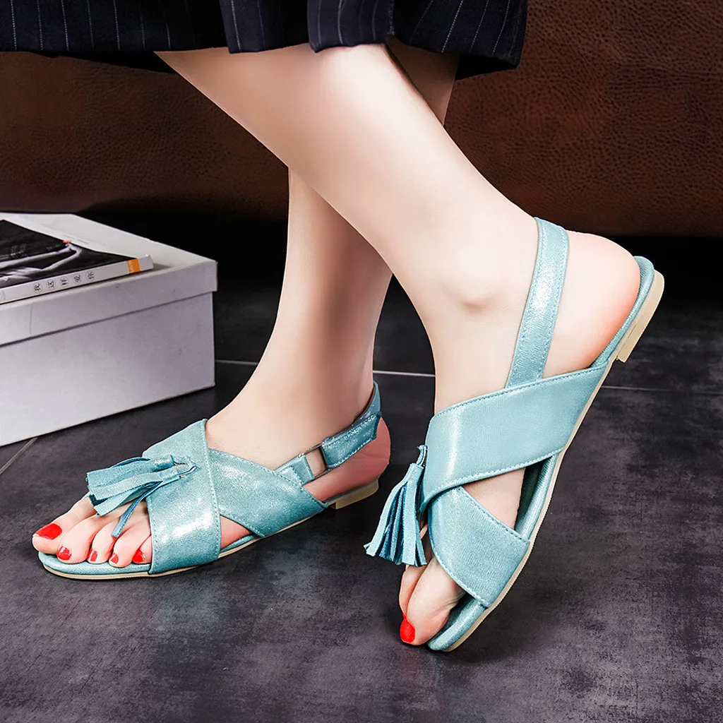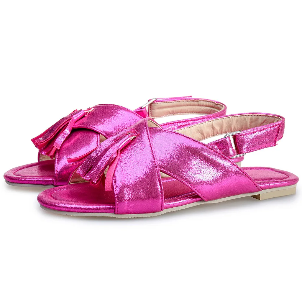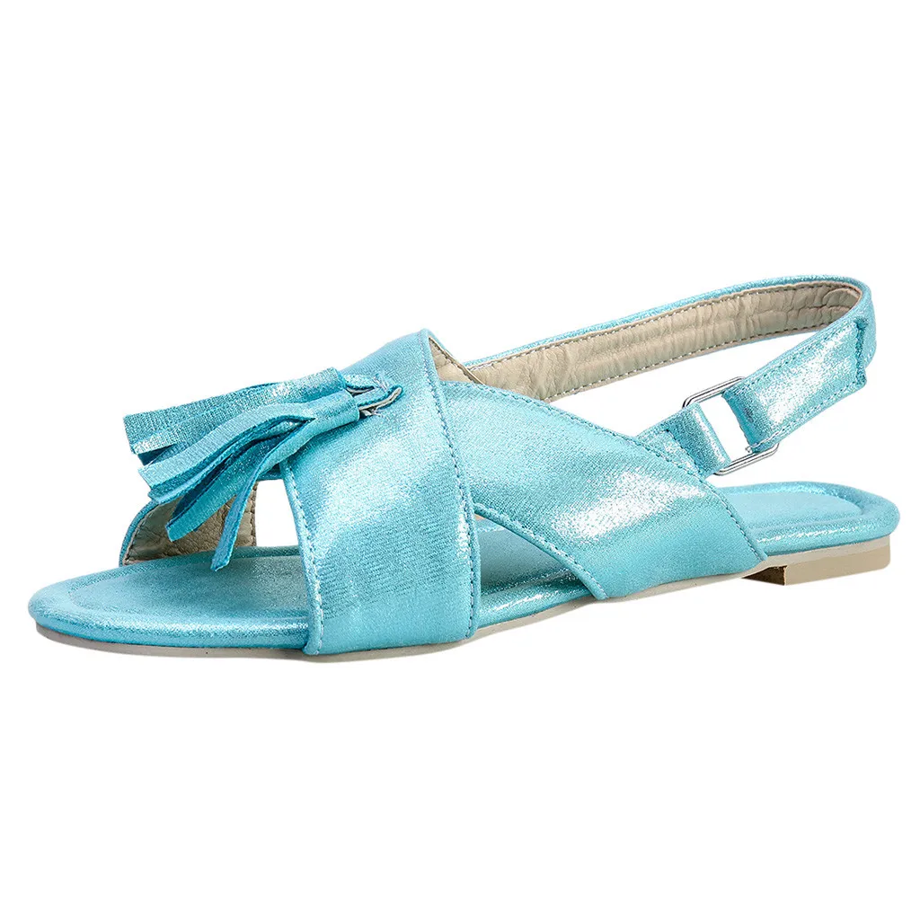Женская летняя обувь на плоской подошве; сандалии с кисточками; сандалии с пряжкой и открытым носком; большие размеры
