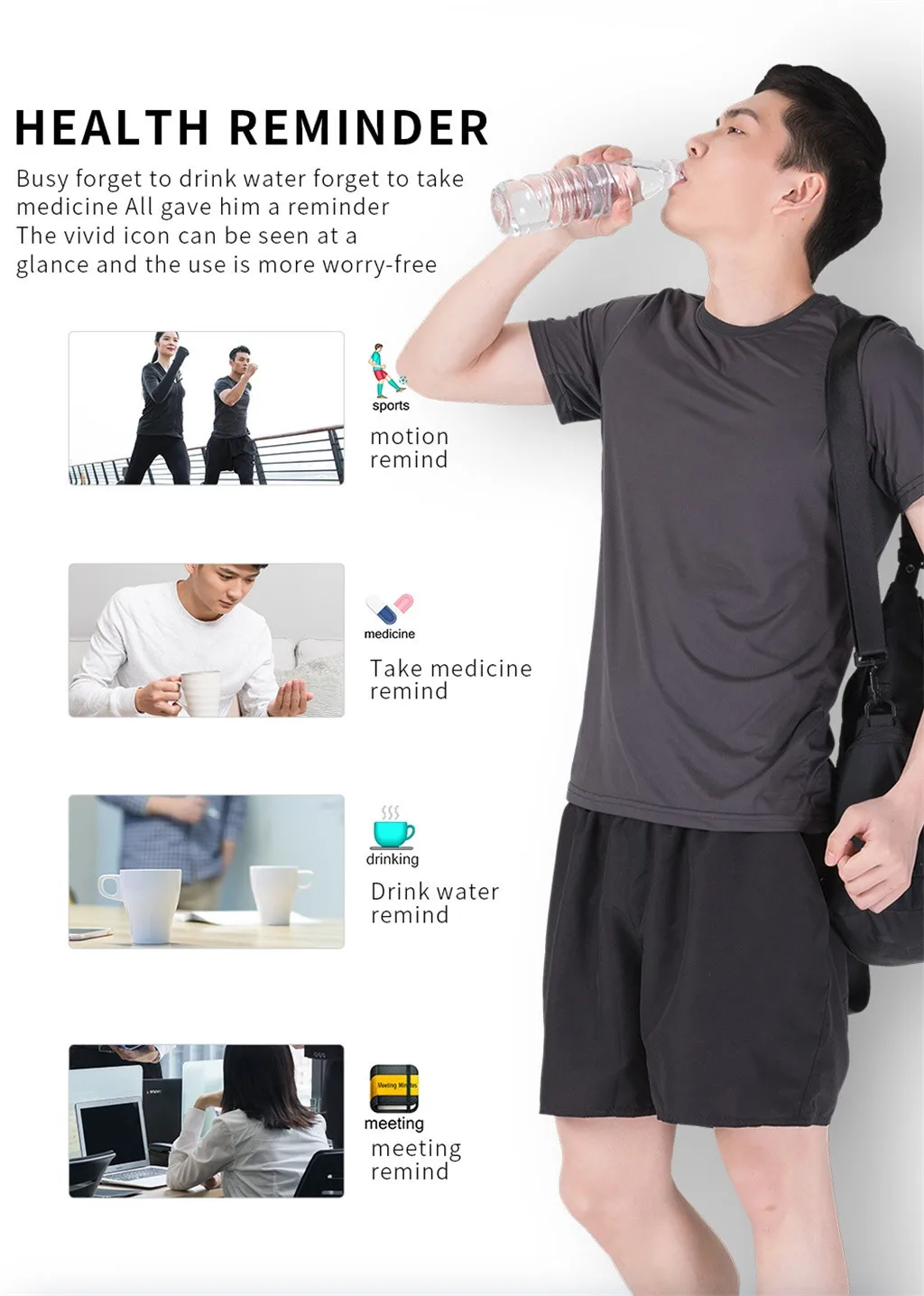 Цветной экран 1,22 IPS HD разрешение 240X204 Ручная кнопка Литий-полимерный аккумулятор 135 мАч, срок службы 7 дней, в режиме ожидания 15 дней Фотоэлектрический датчик HRS3313 фотоэлектрический датчик Трехосный датчик ускорения dr, низкий расход энергии Память 64 M Flash Режим зарядки Магнитная контактная нагрузка Адаптационный метод может использоваться независимо, или мобильное приложение может быть Используется в одно и то же время Bluetooth 4,0 BLE (низкое энергопотребление)Параметры: