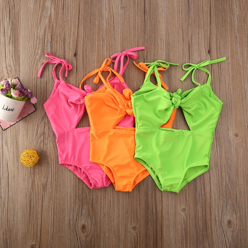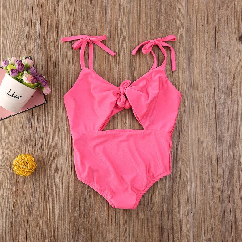 Новинка; Модный детский однотонный купальный костюм с оборками для девочек!