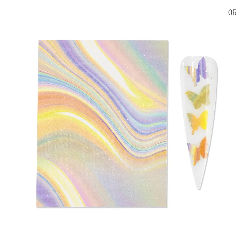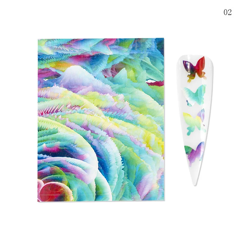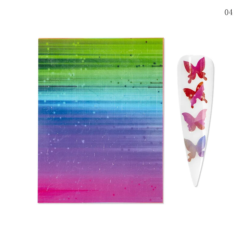 Количество: 8 листов Размер: 6,2*8,2 см Цвет: цвет насыщенный Посылка: 8 листов Holo Бабочка 3D стикер для ногтей