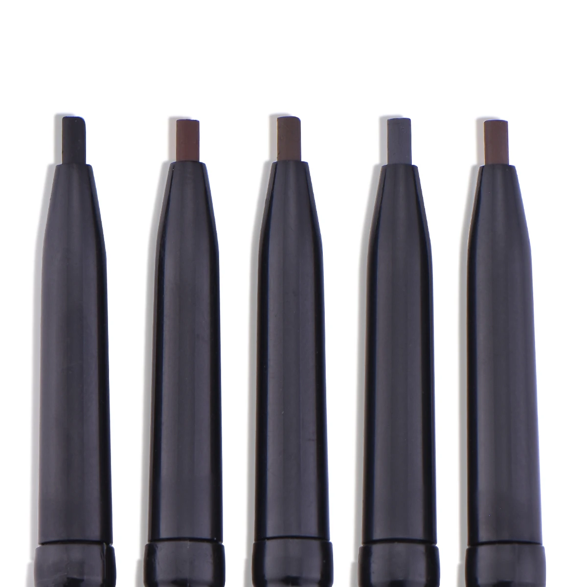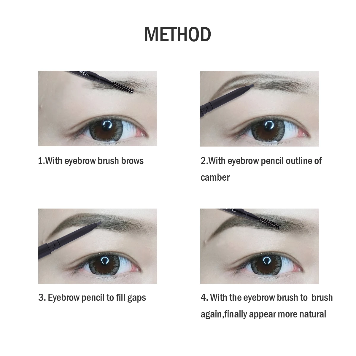 Тусклый карандаш для бровей с зубчатым наконечником легко скользит по контуру камбера. Прикрепленная кисть точно формирует бровь.