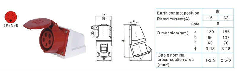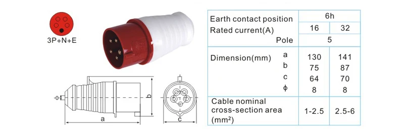 32A 5 Pin 220V-415V 3P + E + N IP44 силовое электрическое соединение промышленная розетка водонепроницаемый мужской женский разъем Модель: 025/125/225/325 Название: промышленная розетка/вилка Ток: 32A Напряжение: 220-415 В Полюс: 5 Контактное положение земли: 6h Степень защиты: IP44 Материал: PA66,H62 латунь Сертификация: CE