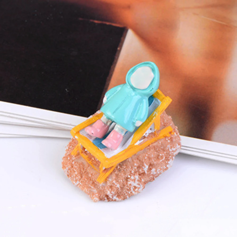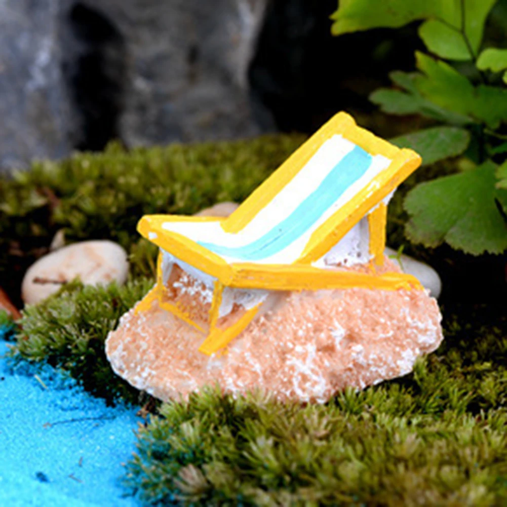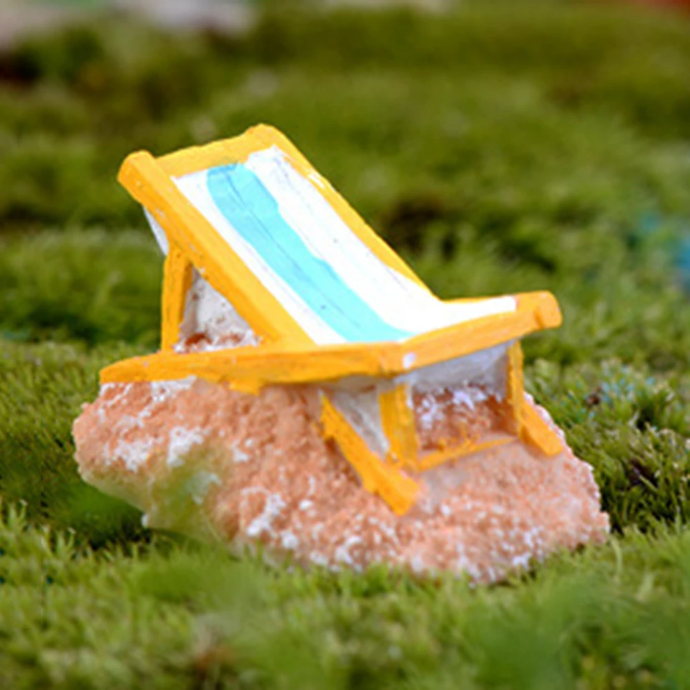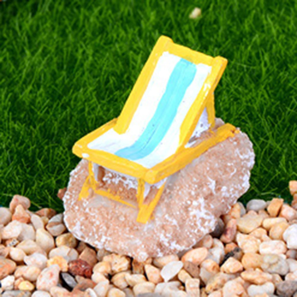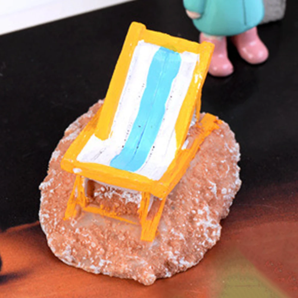 Миниатюрная Статуэтка кукольного пейзажа из смолы на пляжном стуле