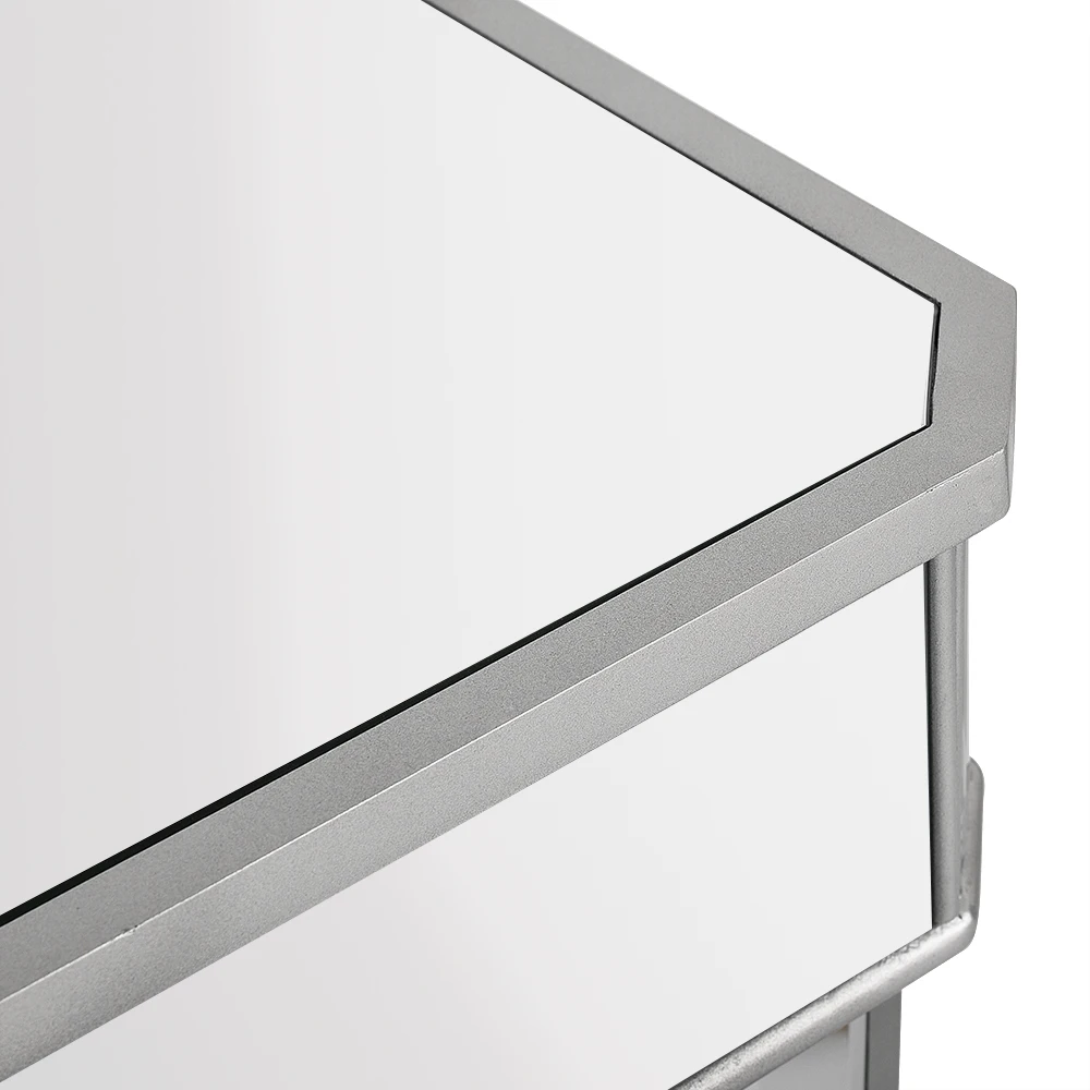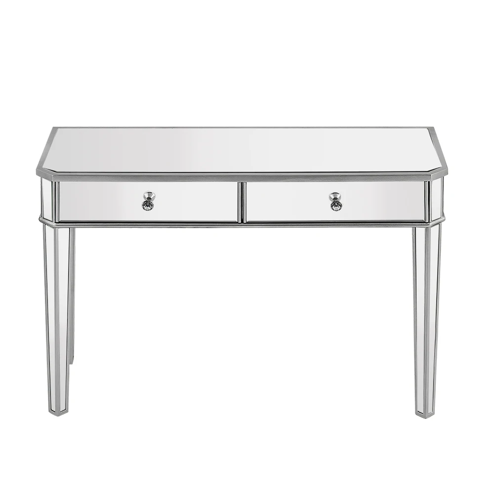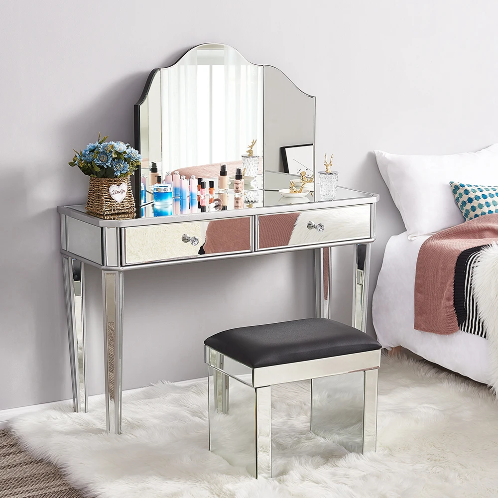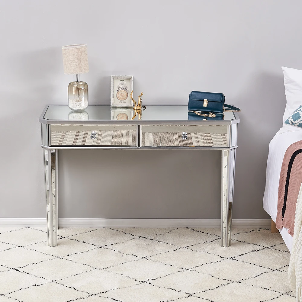 Этот Зеркальный туалетный столик с 2 ящиками является одним из наших самых популярных туалетных столиков из-за его крутого и современного дизайна. С просторными ящиками и обширной столешницей вы найдете много места для хранения макияжа, кисти для волос и аксессуаров. Он также отлично выглядит как часть набора туалетного столика с подходящими стульями и красивыми тремя панельными зеркалами туалетного столика.