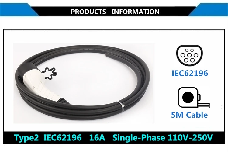 Информация о продукте: • Модель: Тип 2 IEC62196-2 • Ток зарядки: 16 А • В поставке Напряжение: однофазный 110V-250V • Рабочая температура: -30 °C ~ + 50 °C