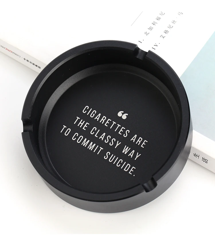 Название продукта: пепельница Название бренда: производные Oddity Материал: металл Цвет: черный Технология обработки: лазерная маркировка Узор: курение цитаты Форма: круглый Посылка включает в себя: пепельница X 1 шт. (Сигареты в комплект не входят)