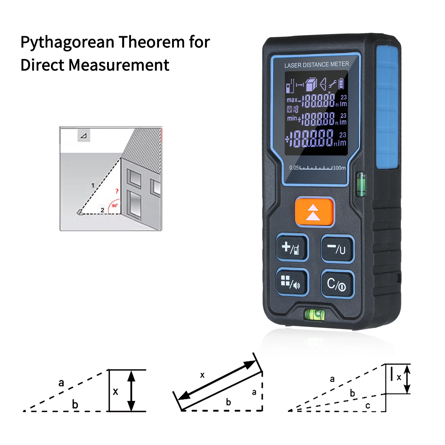 6 режимов измерения: устройство имеет несколько режимов для различных измерительных требований, включая одиночный режим измерения, Режим непрерывного измерения, режим измерения площади, режим измерения объема, одиночный режим теоремы Пифагора, двойной режим измерения теоремы Пифагора.