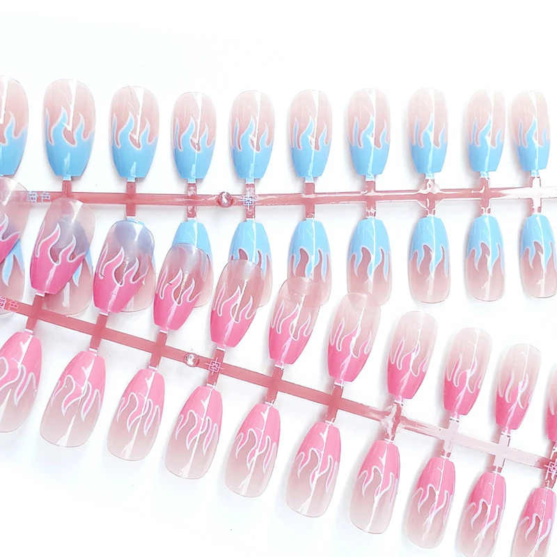 24 шт./компл. пламя накладные ногти Типсы балерина гроб полное покрытие накладные ногти искусство ногтей DIY Красота Инструменты ногтей Красота аксессуары для дизайна ногтей