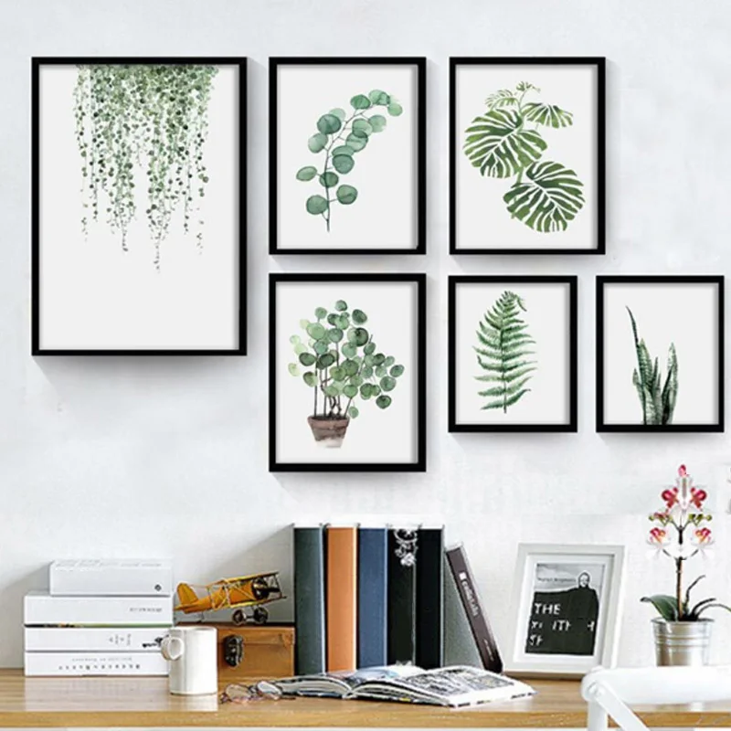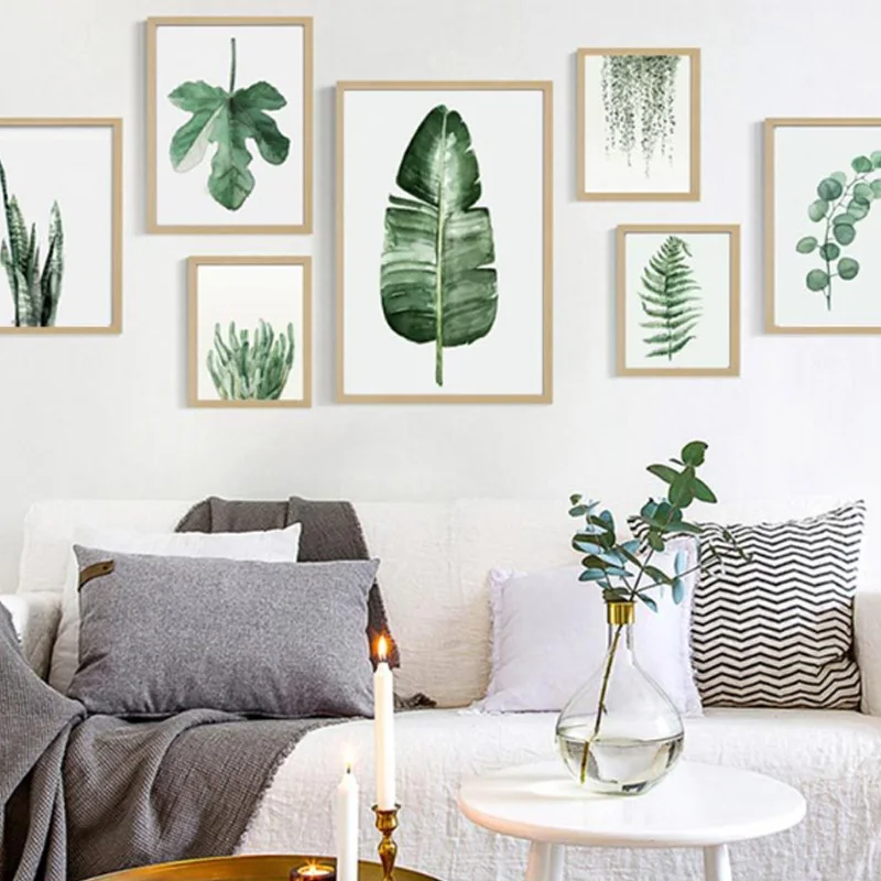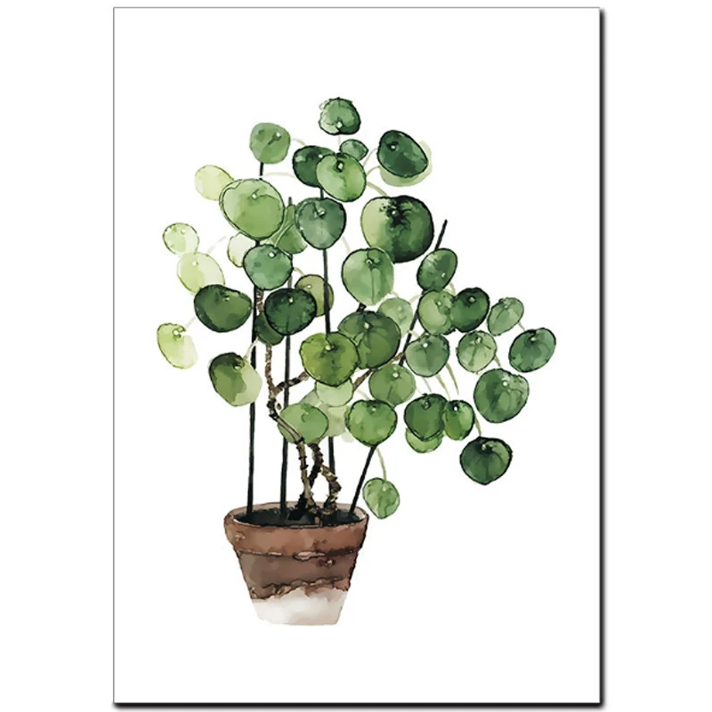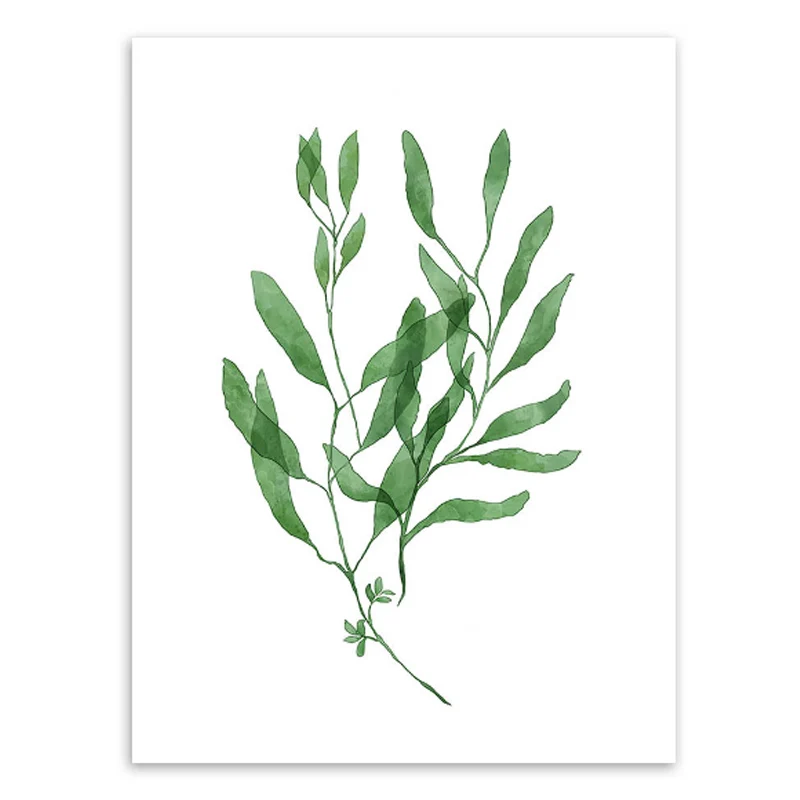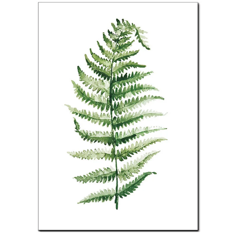 Постеры настенное искусство скандинавские декоративные картины Современные принты без рамки зеленые растения 1 шт Холст акварельные листья живопись