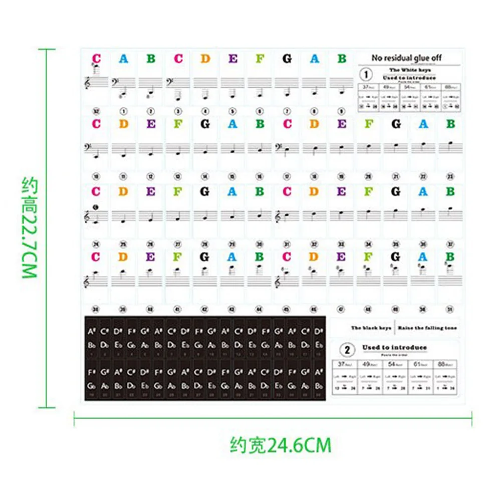 Фортепианная наклейка прозрачная, в форме рояля 88/54/49 клавиши, электронная клавиатура, наклейка для ключей, наклейка для фортепиано, наклейка для нот, для белой музыки 35