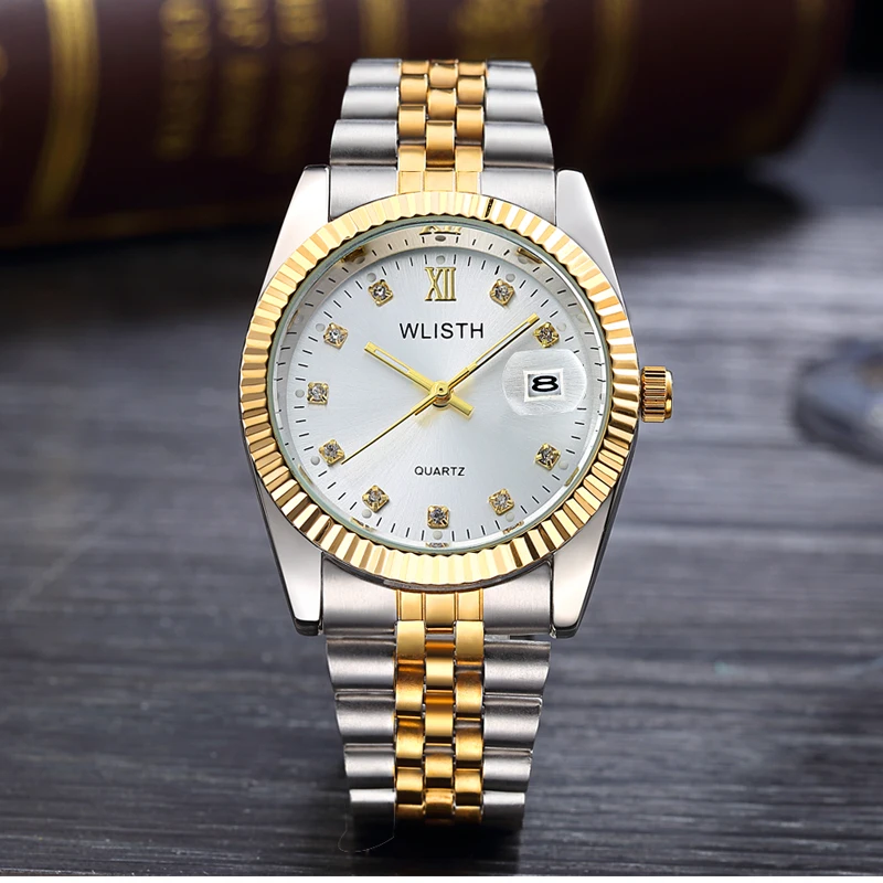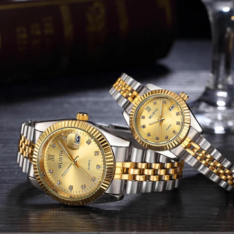 Золотые часы для влюбленных 2020 Wlisth брендовые Роскошные деловые кварцевые часы для мужчин и женщин парные часы Стальные водонепроницаемые парные часы