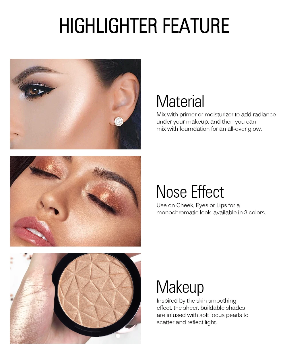 SACE LADY 3 цвета хайлайтер, пудра, палитра, макияж, блеск для лица, блеск для контурного макияжа, пудра, хайлайтер, косметика для женщин