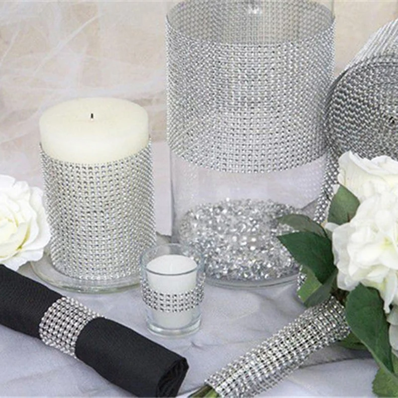 1 ярд 24 ряда Золотая Серебряная кристальная Алмазная сетчатая лента для украшения свадебной вечеринки