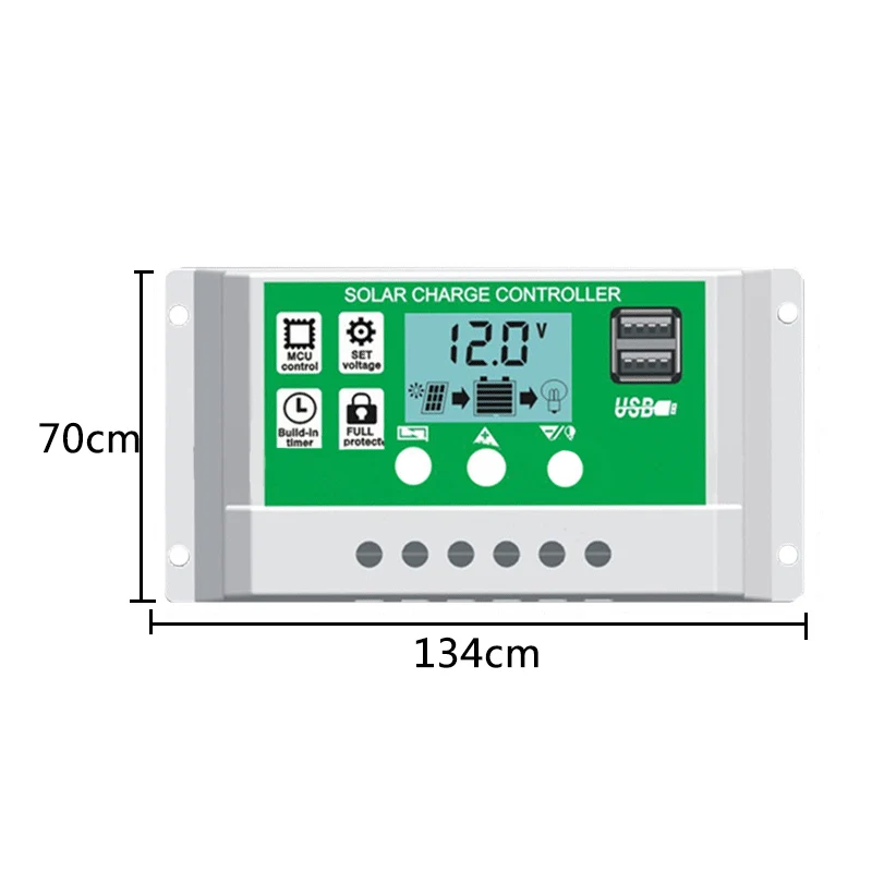 -Двойной usb-порт: Контроллер заряда на солнечной батарее разработан с двумя usb-портами, выход USB: макс. 5 В/3 А.