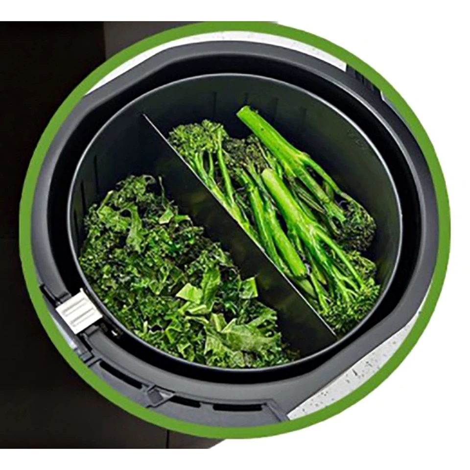 basket divider lets you cook 2 different foods at the same time without them coming into contact.