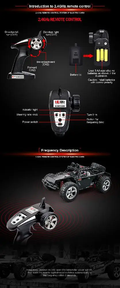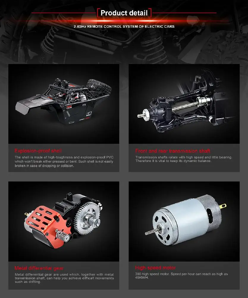 1. Этот продукт принимает 2,4 ГГц с поддержкой технологии несколько высокоскоростных автомобилей и гонок в одно и то же время, чтобы добиться прекрасных высокой скорости внедорожный дрейфующими действиями.