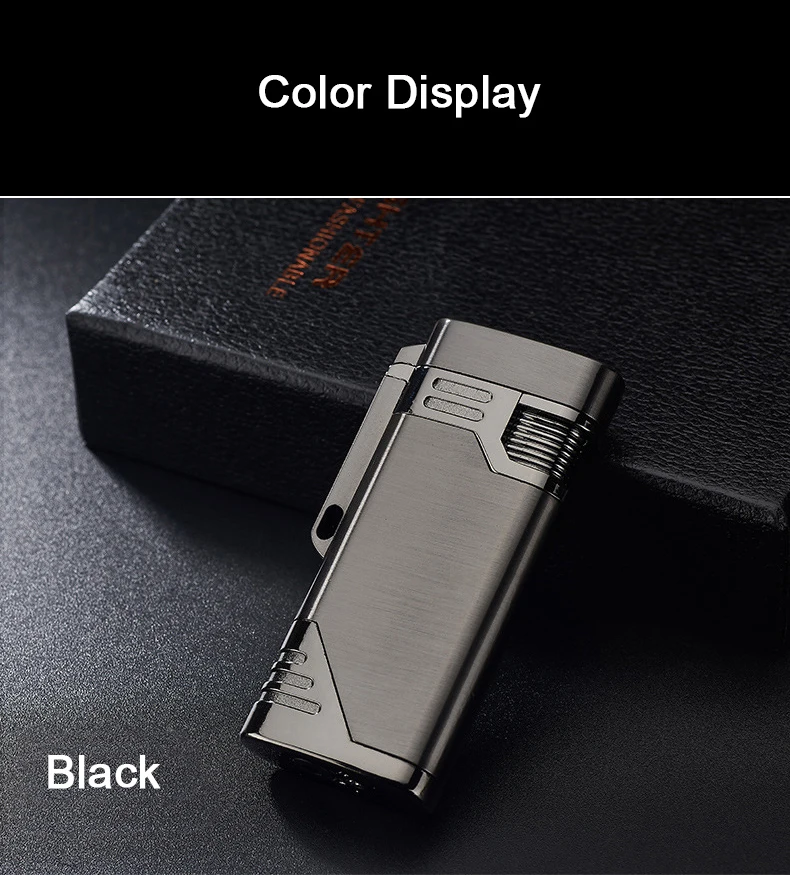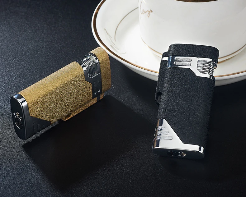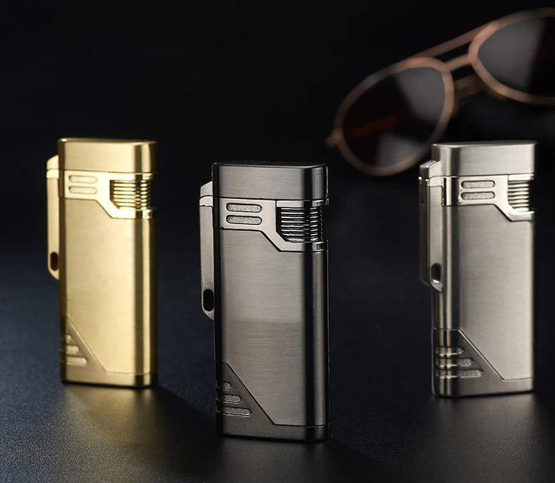 Новые Двойные форсунки Бутановая струйная Трубная Зажигалка металлический фонарь турбо ветрозащитная газовая зажигалка 1300 C сигары сигареты брелок зажигалки