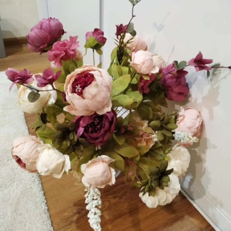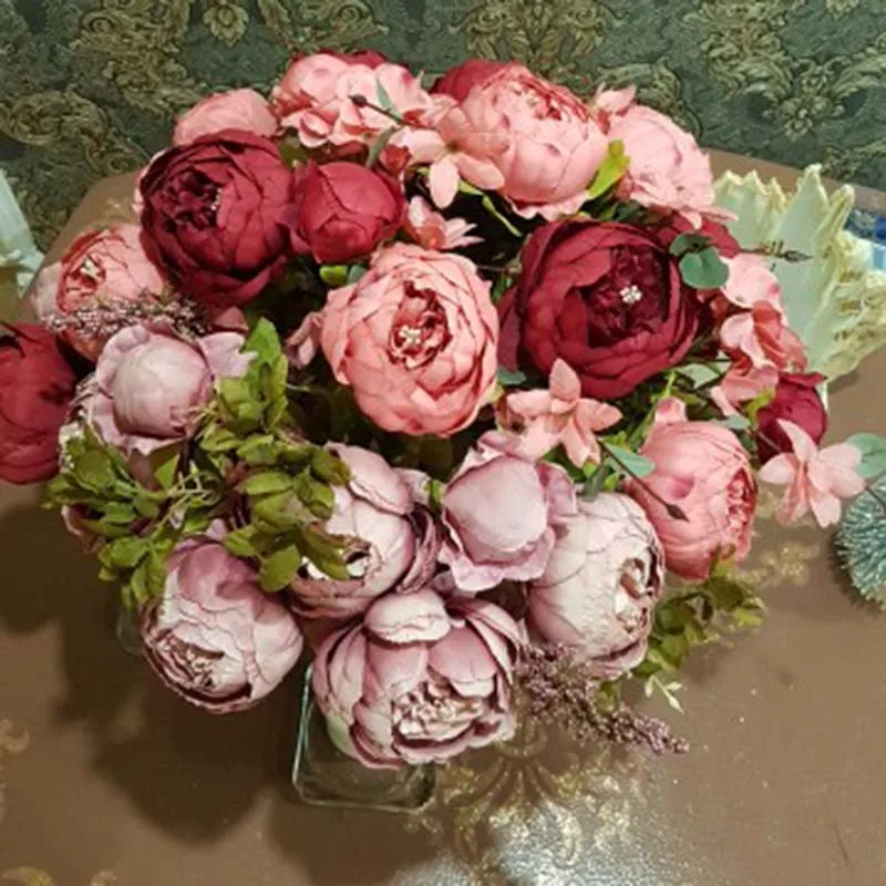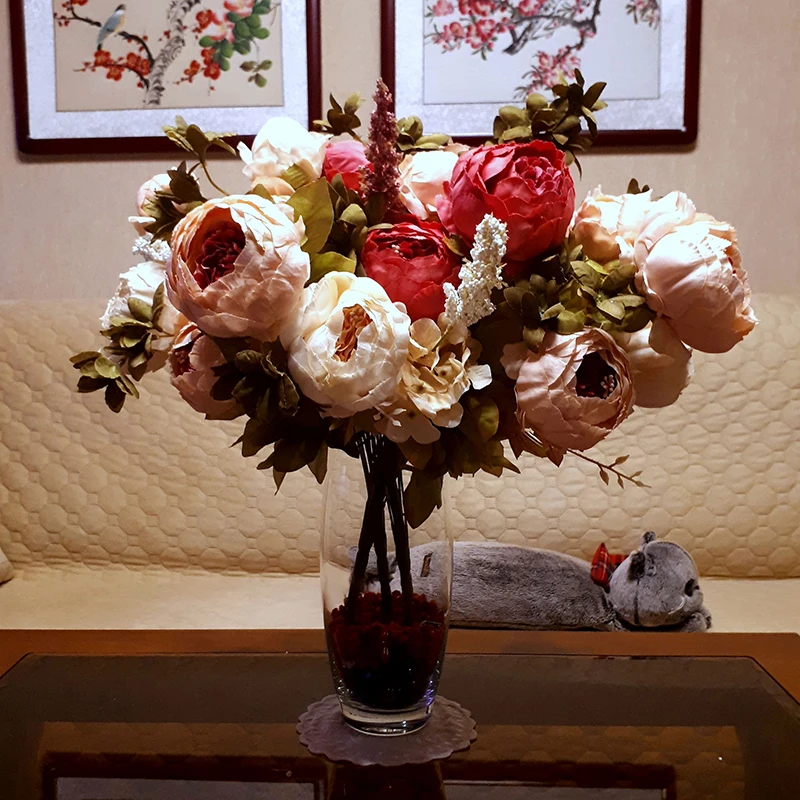 Материал: шелк/пластик Цвет: как на изображении Посылка с цветами пиона: 1 букет искусственных цветов пиона (6 шт. 9 см Цветочные головки пионов + 2 шт. 5 см почки пиона, + 5 пластиковых стеблей травы) Эвкалипта листья ветви и Лаванда посылка: 1 шт. Ветви Эвкалипта или 1 шт. цветок лаванды