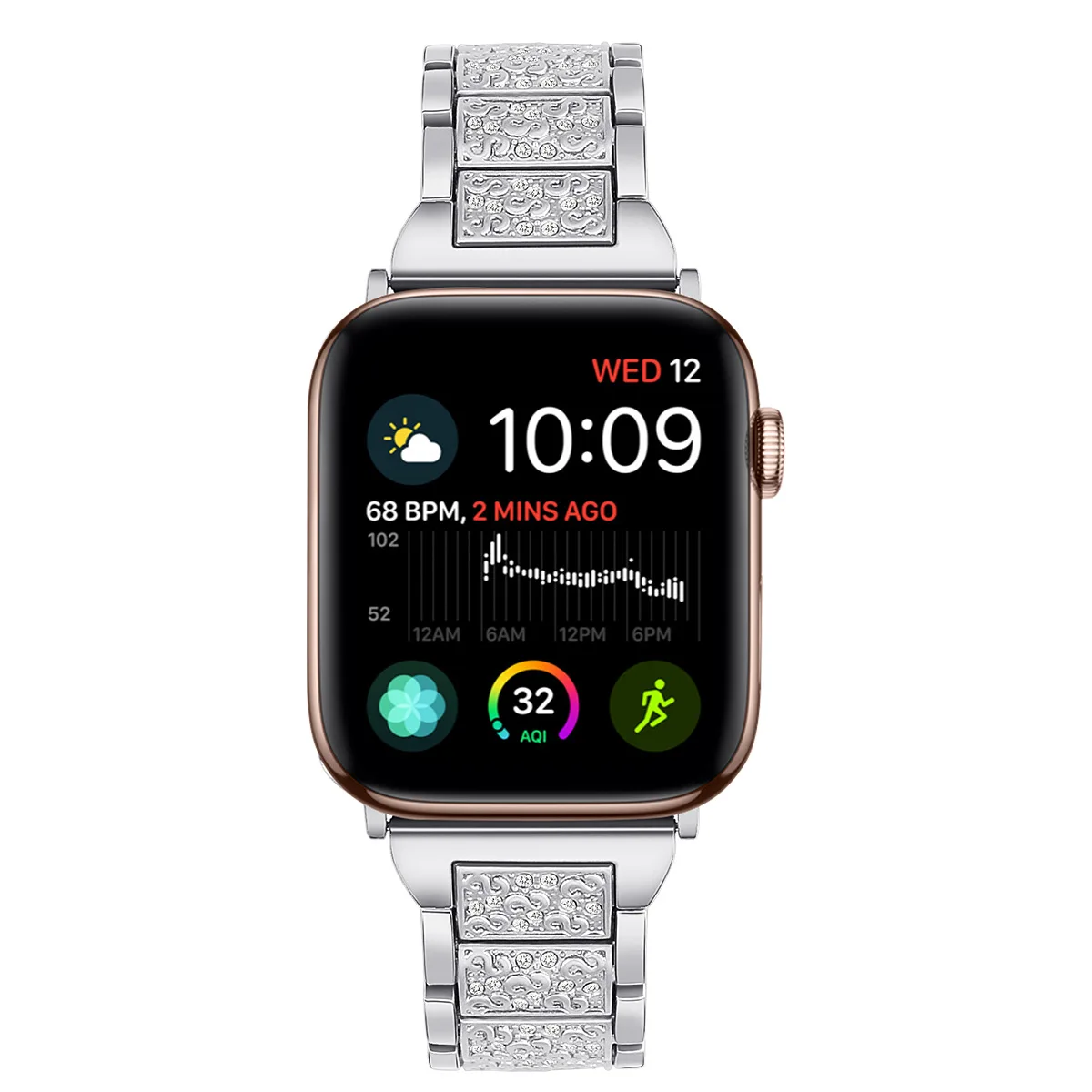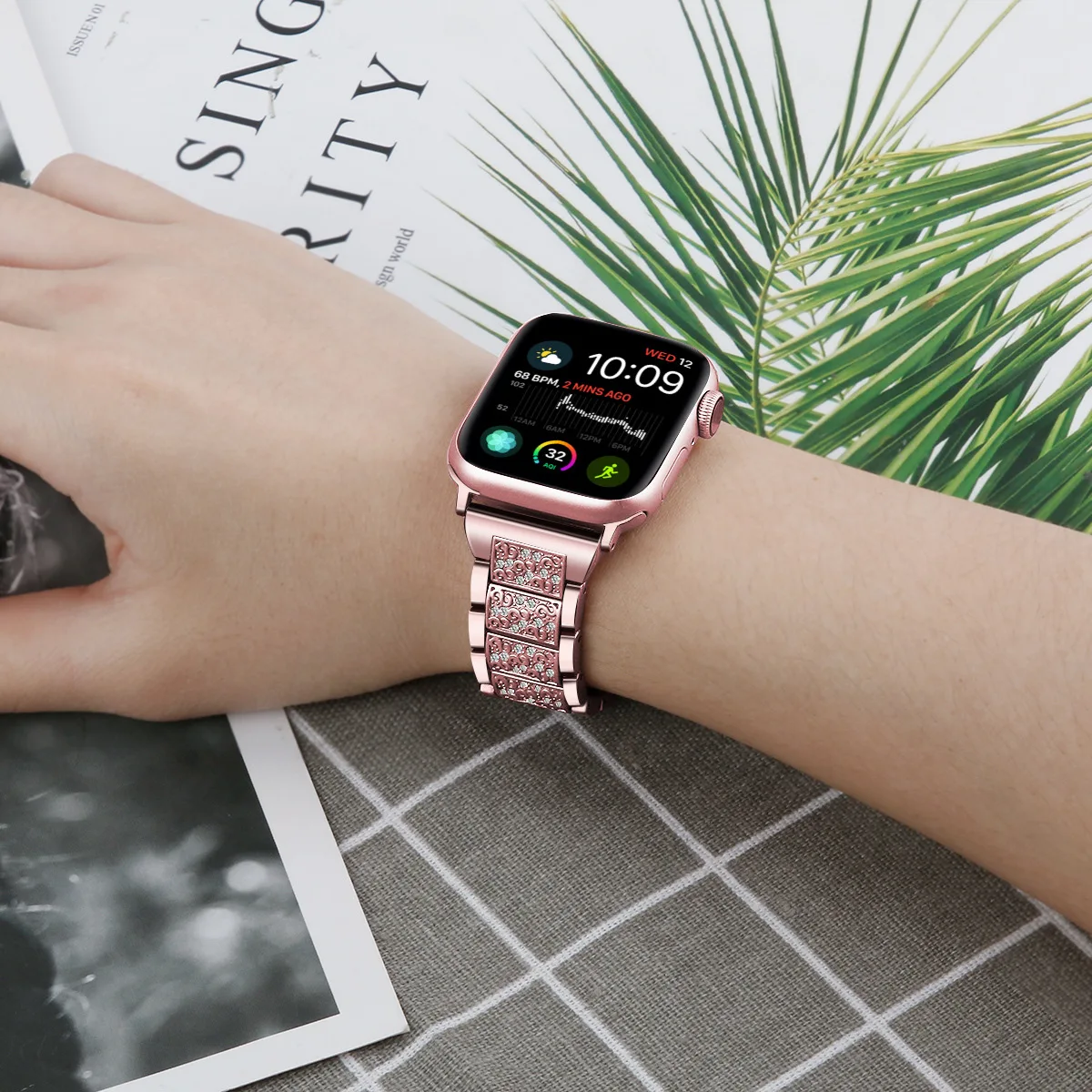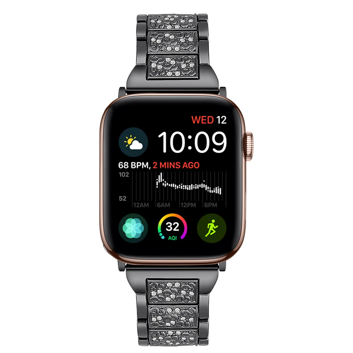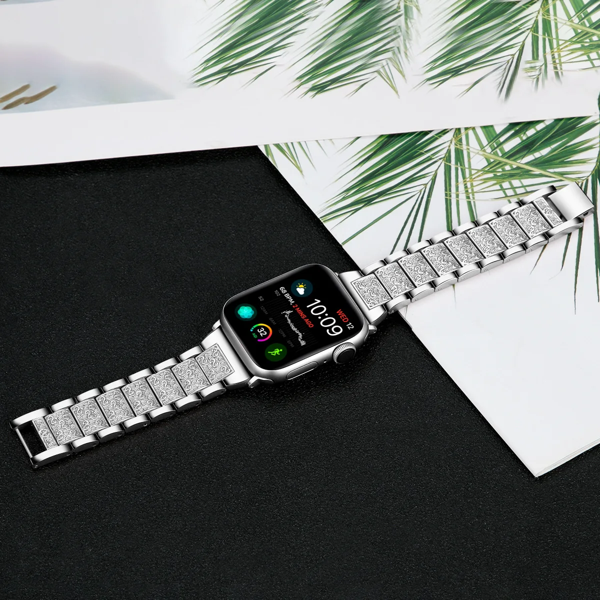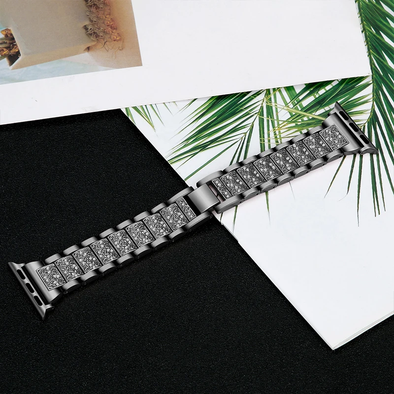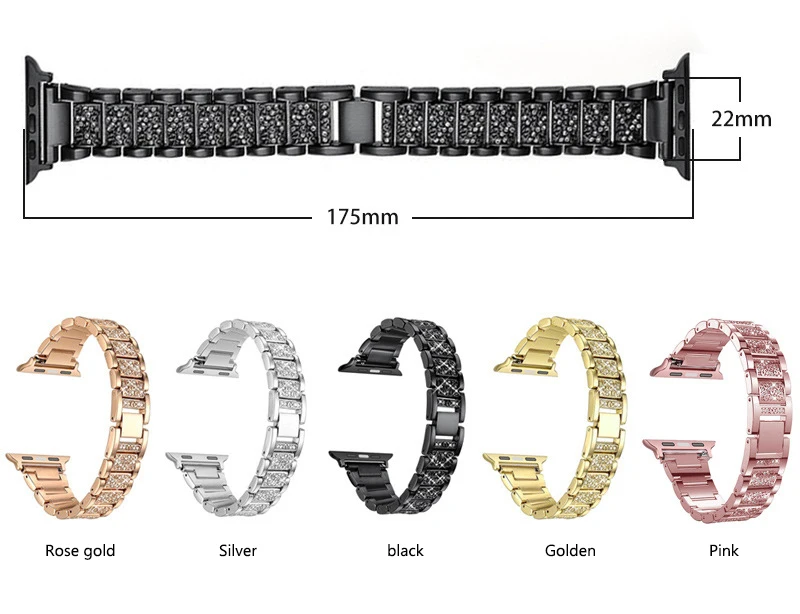 Из нержавеющей стали со стразами на ремешке Для apple watch6 5 SE 4 3 2 1 Свойства товара: Длина изделия: 175 мм Применимый обхват запястья: 155-200 мм