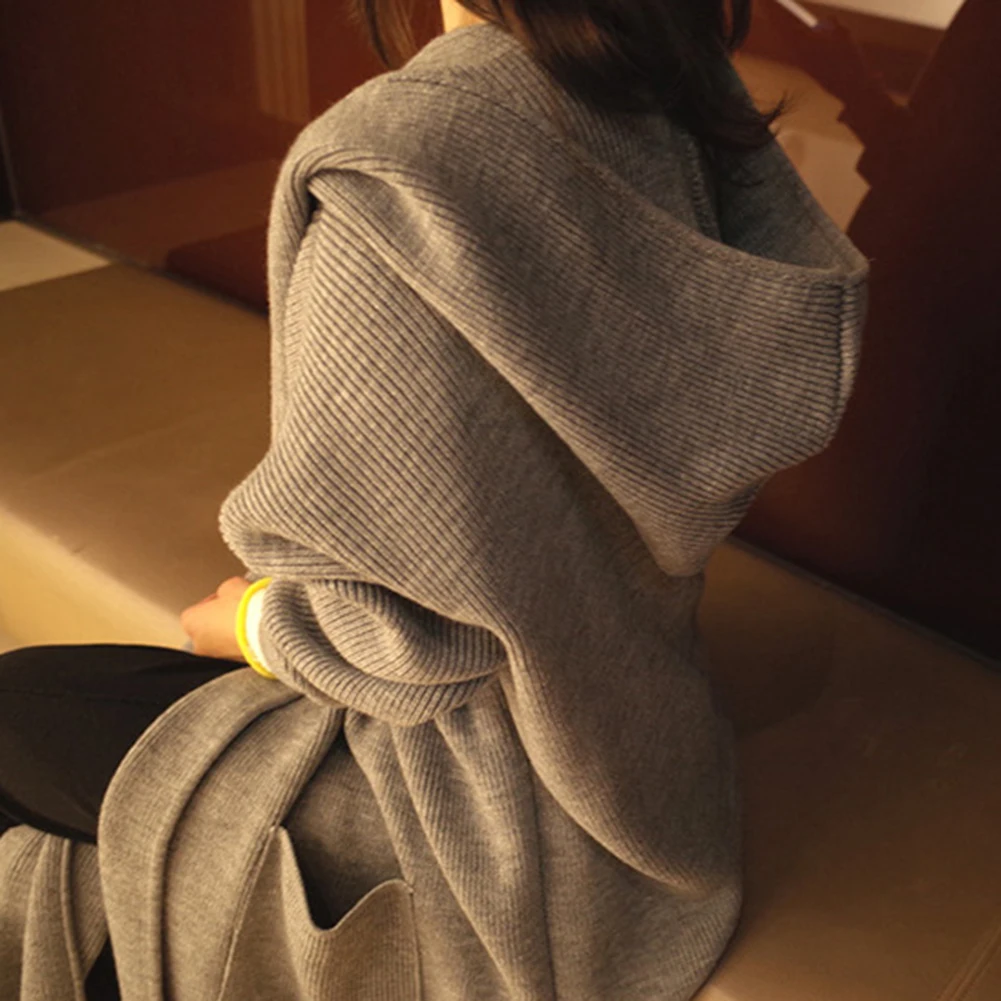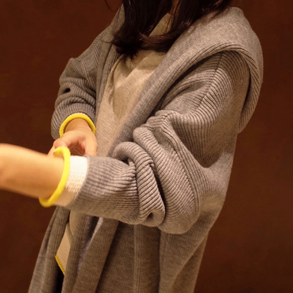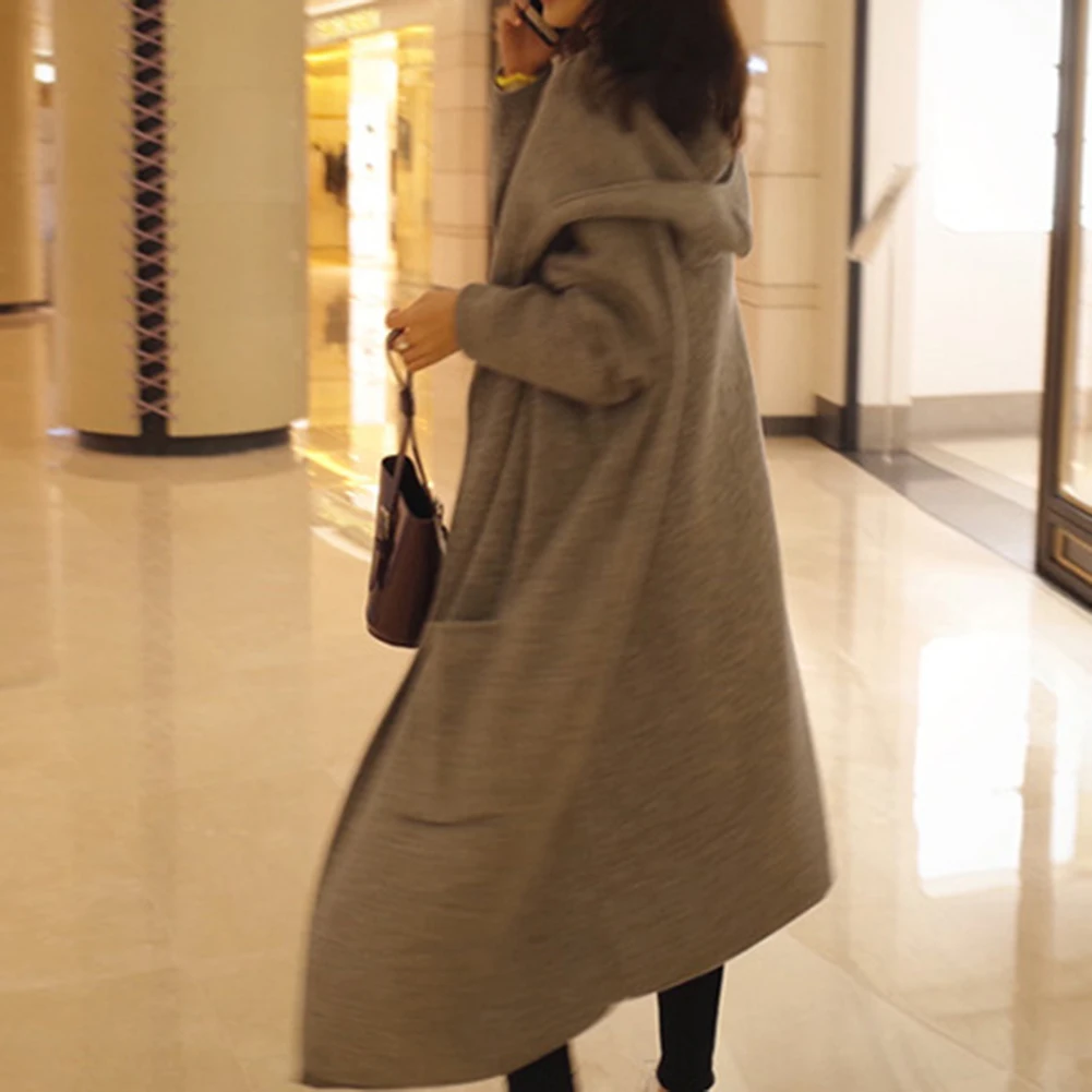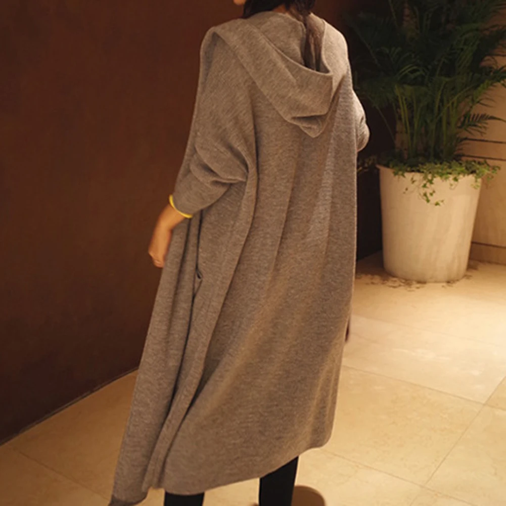 Осенний женский однотонный Кардиган с длинным рукавом и большим карманом, туника с капюшоном, верхняя одежда