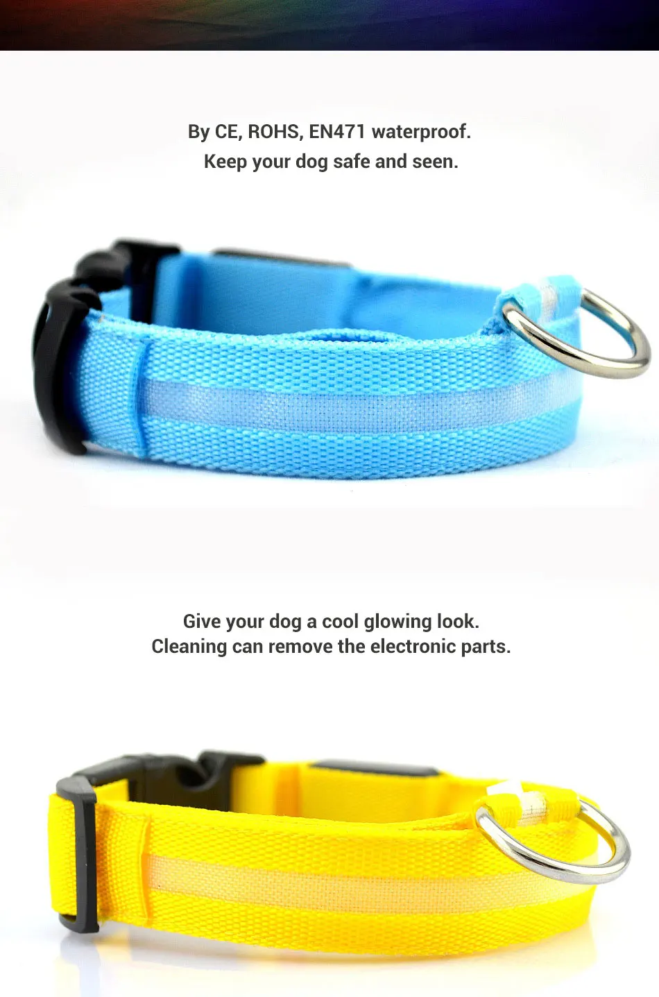 Светодиодный ошейник для собак, анти-потерянный Ночной светильник, 4 размера, водонепроницаемый, 3 режима, светильник для безопасности, регулируемый нейлоновый леопардовый Ошейник для собак