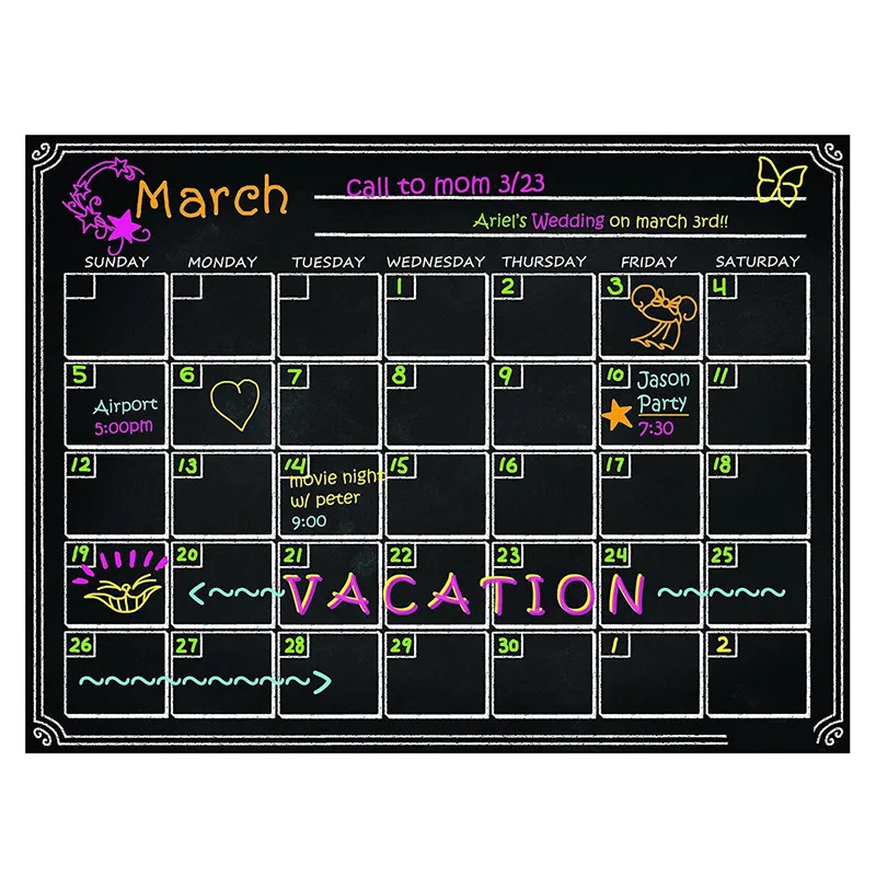 -- Easy to erase -- The planner is covered with special coating and can be easily erased even after 30 days.