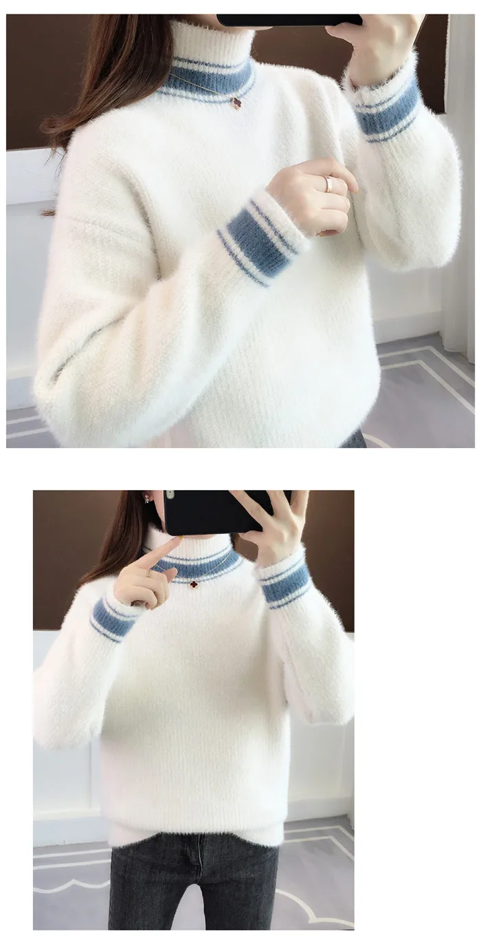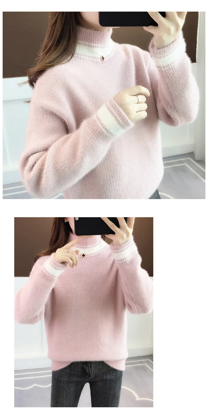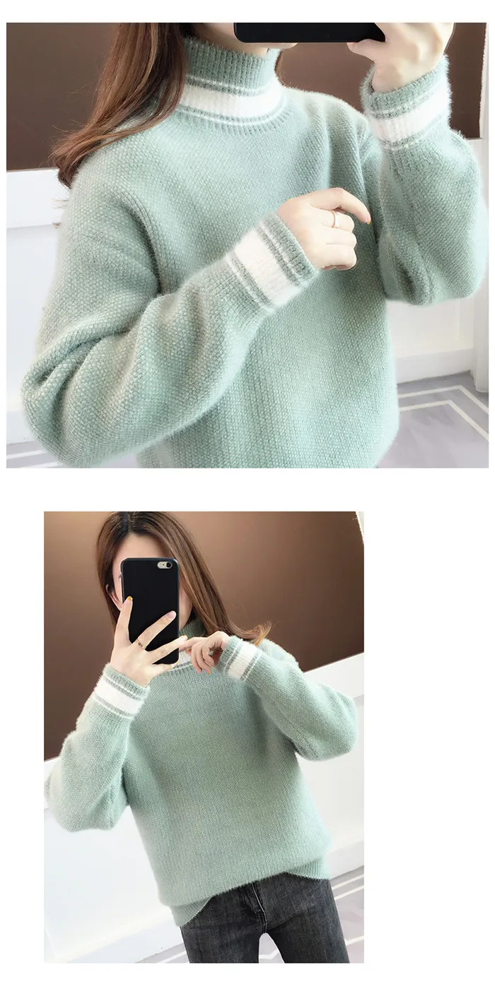 Женская Повседневная Водолазка с длинным рукавом, пуловер большого размера, свитер, Свободный вязаный зимний джемпер, топы, толстая мягкая однотонная вязаная одежда OK510