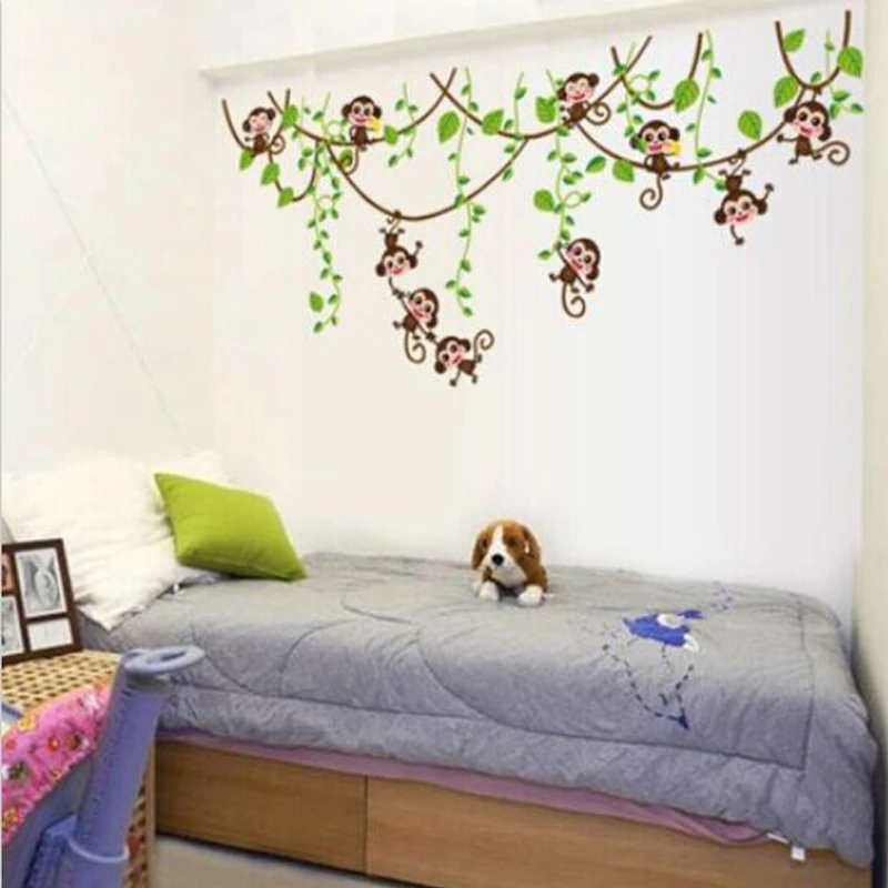 3d домашний декор для детей настенные бумажные наклейки для украшения комнаты спальни Съемные Виниловые джунгли питомник обезьяна Hogar современный постер дом