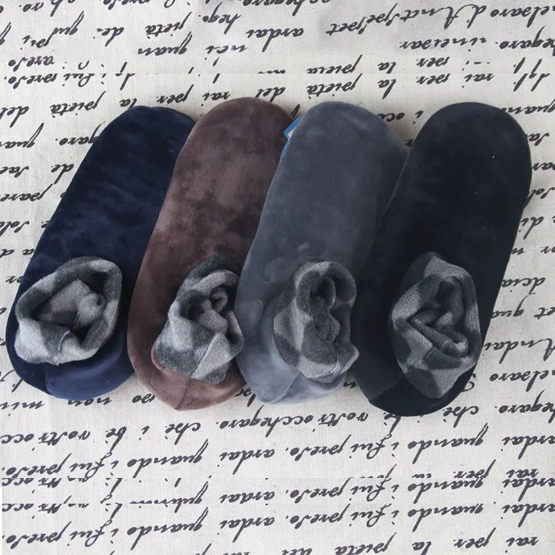 Мужские толстые зимние теплые мягкие носки-башмачки Нескользящие эластичные домашние носки до щиколотки